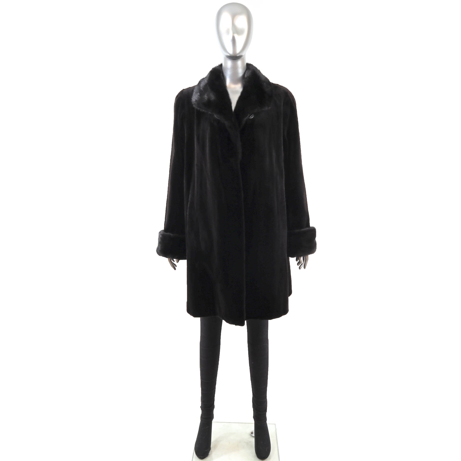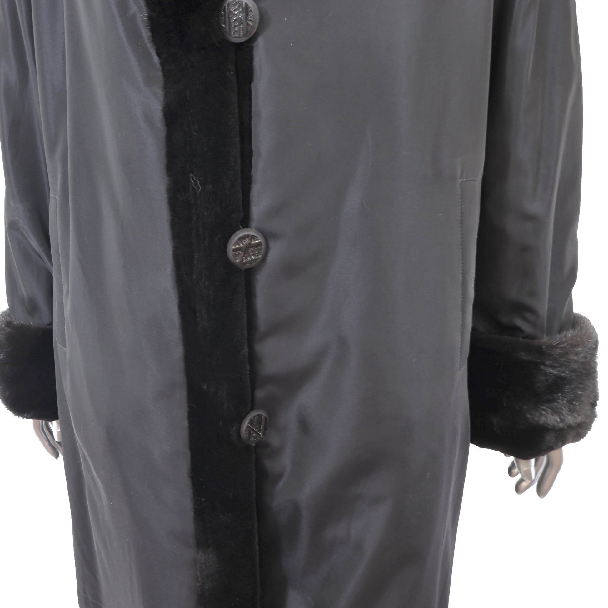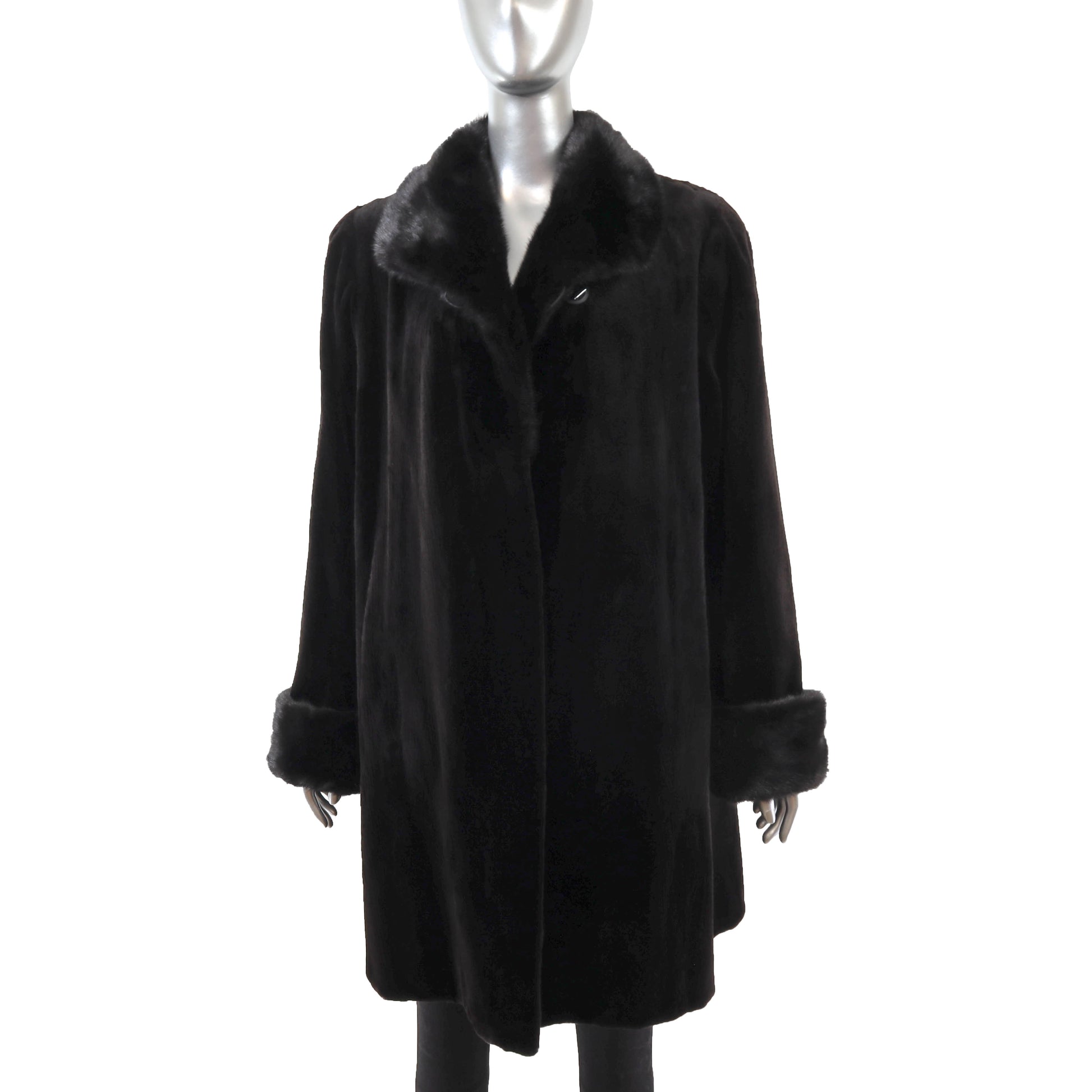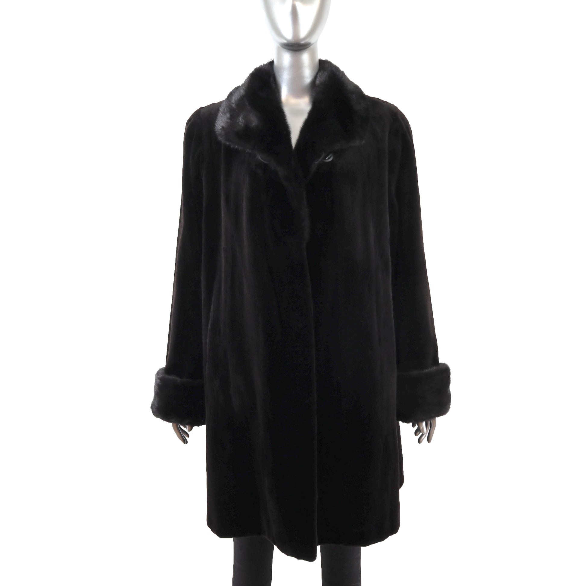 Black Sheared Mink 3/4 Coat Reversible to Taffeta- Size XL