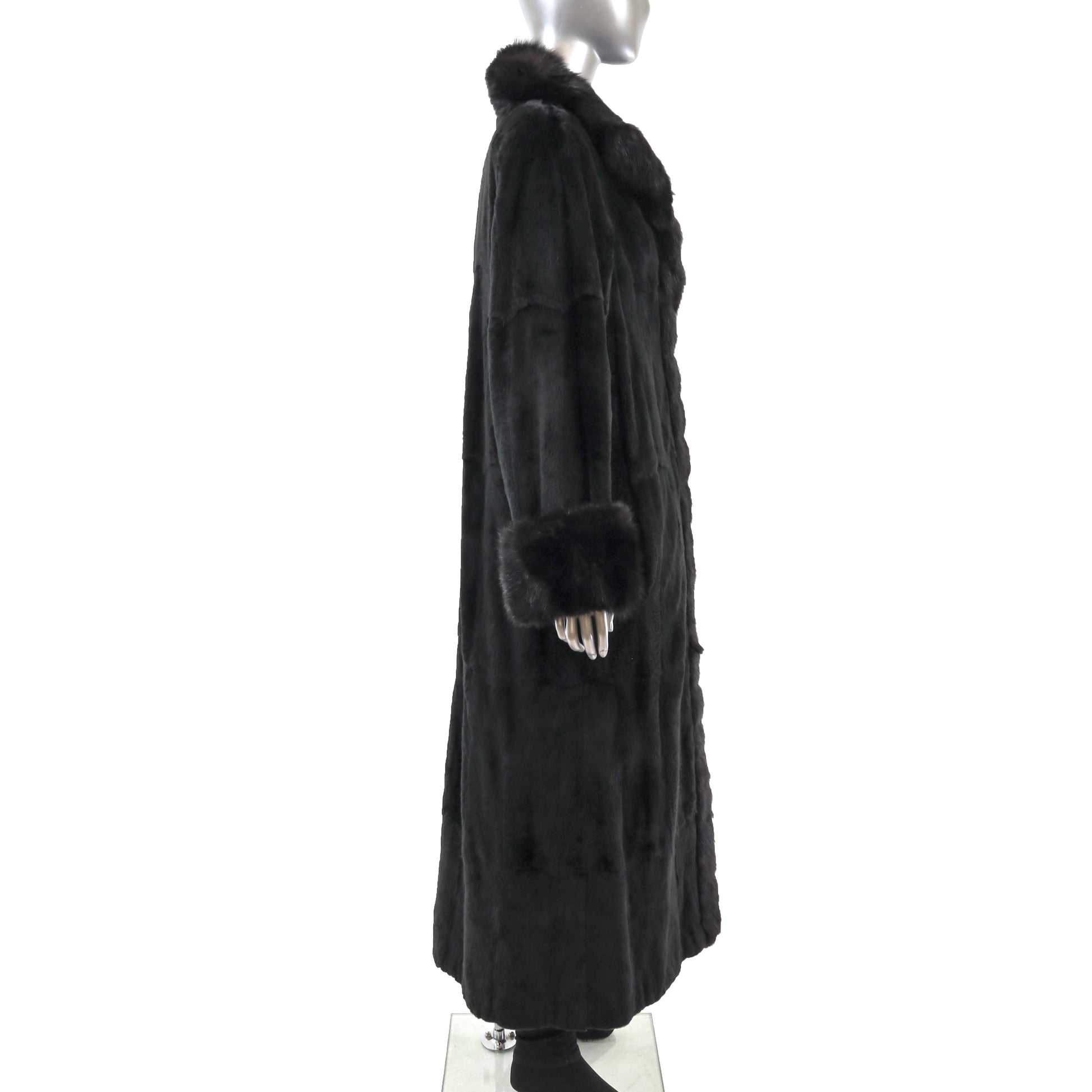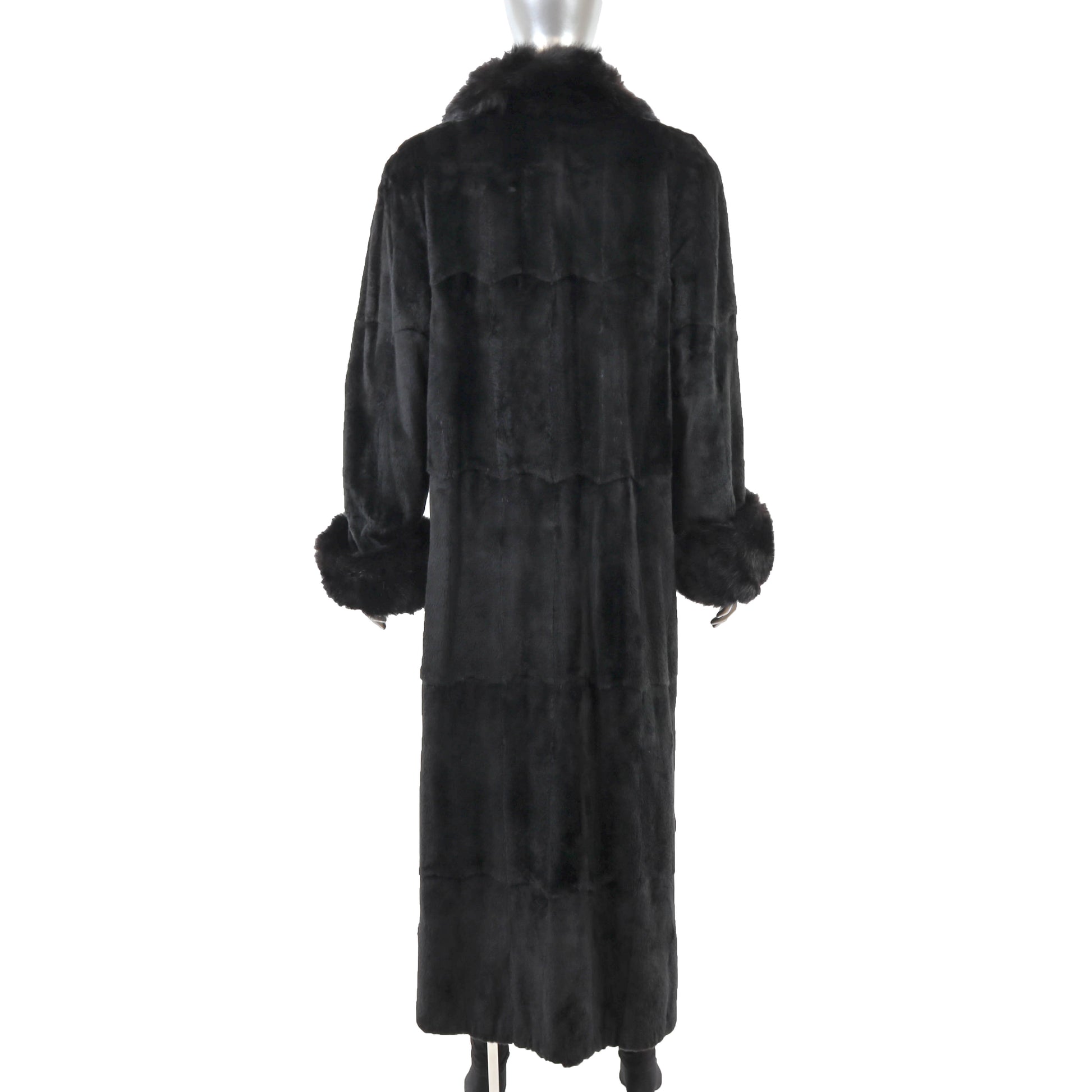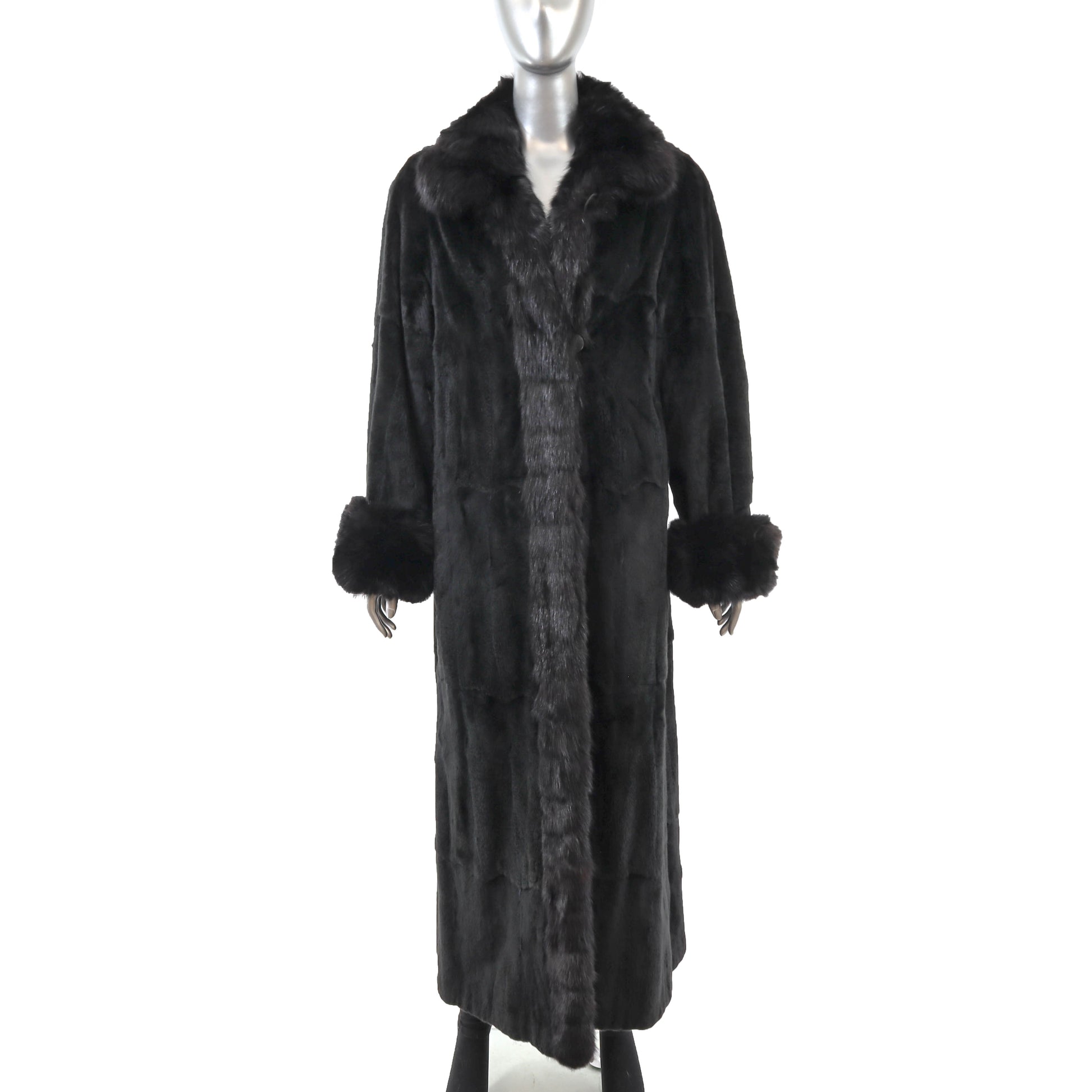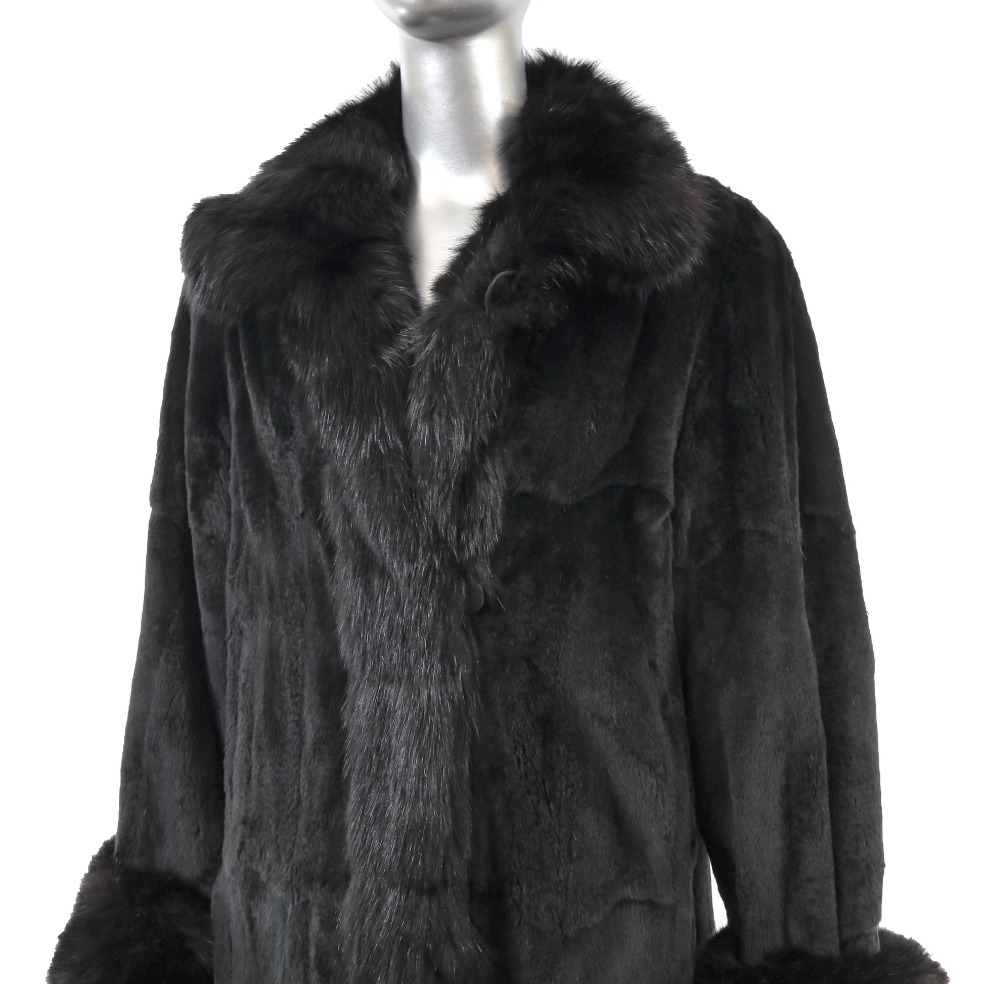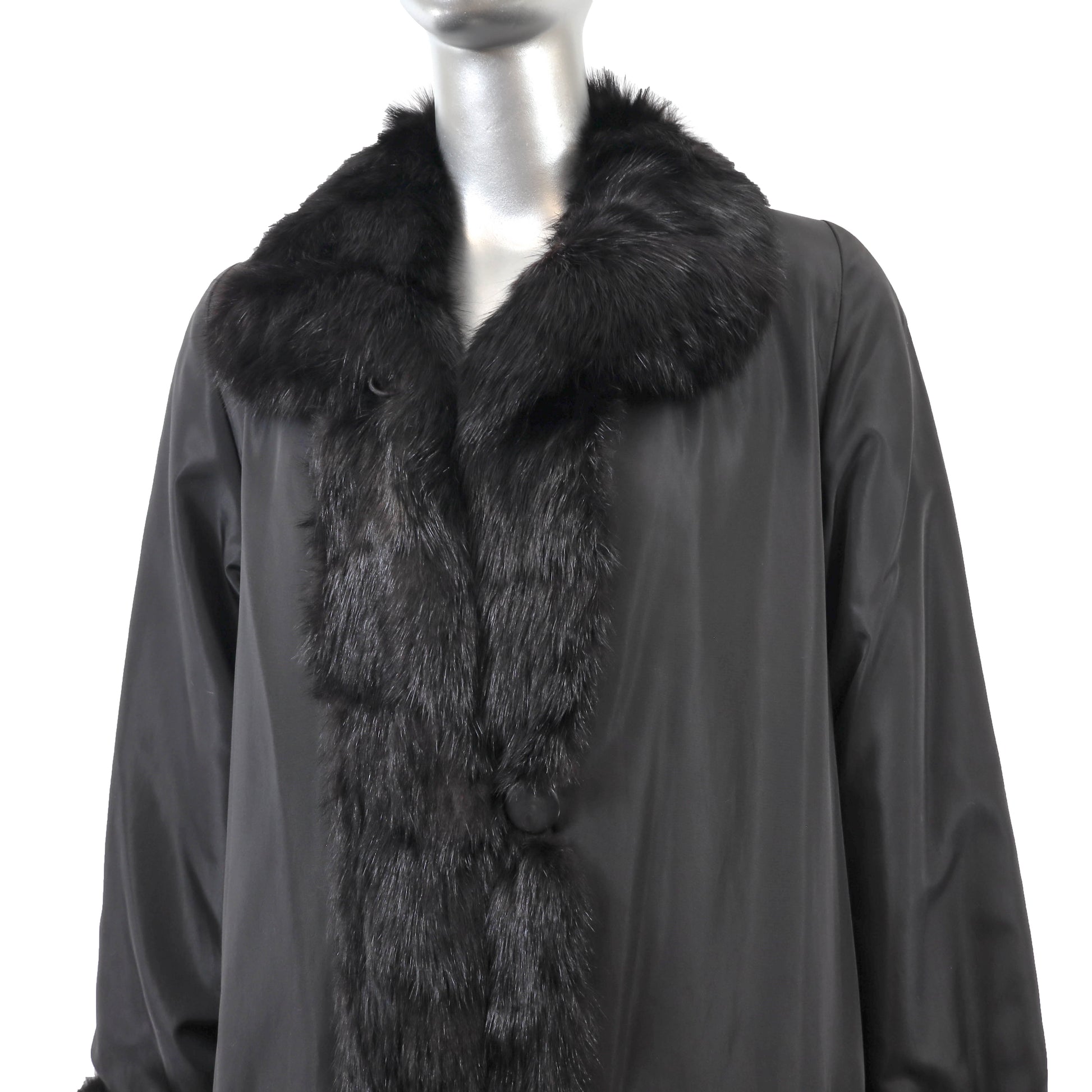 Black Sheared Mink Coat Reversible to Taffeta with Sable Trim- Size M
