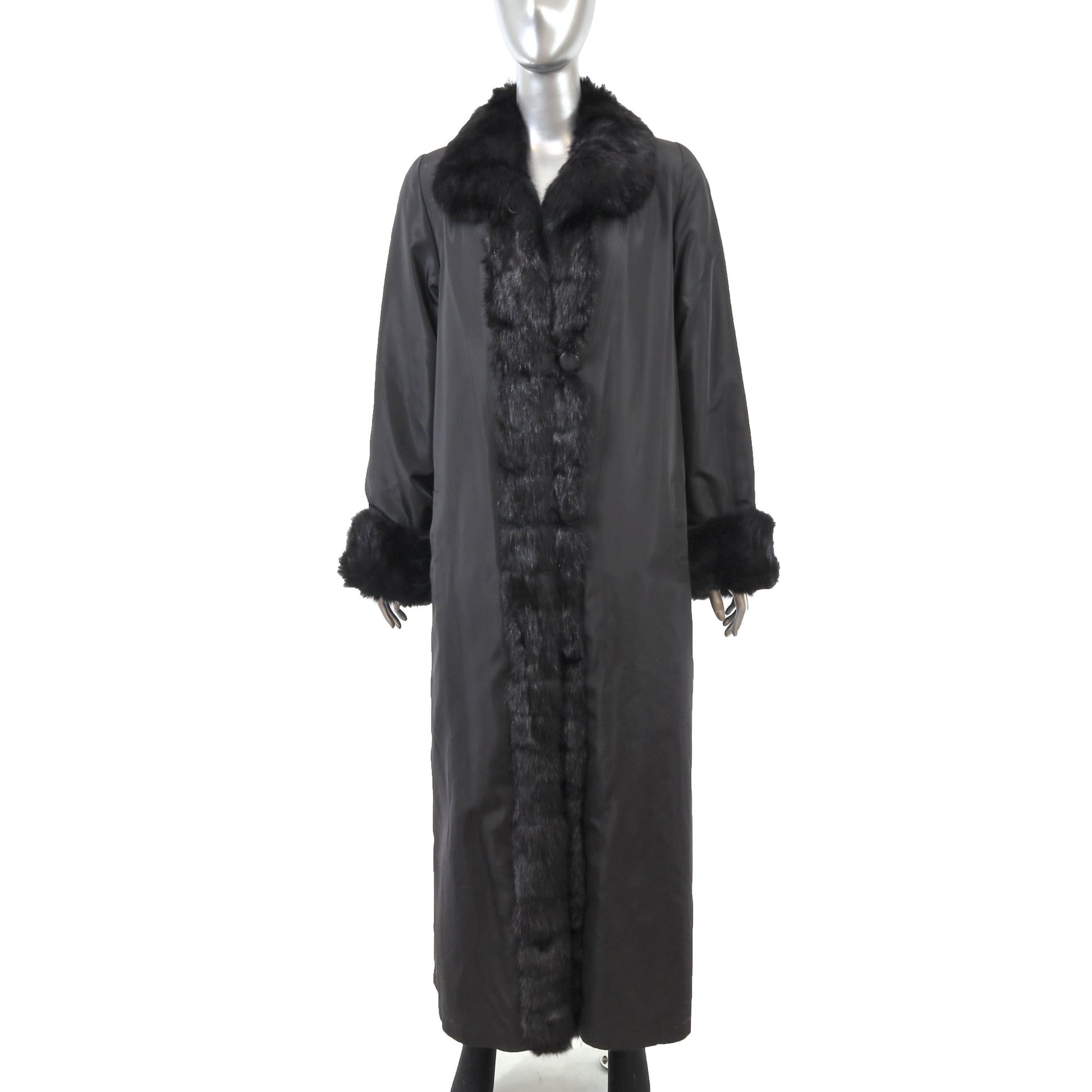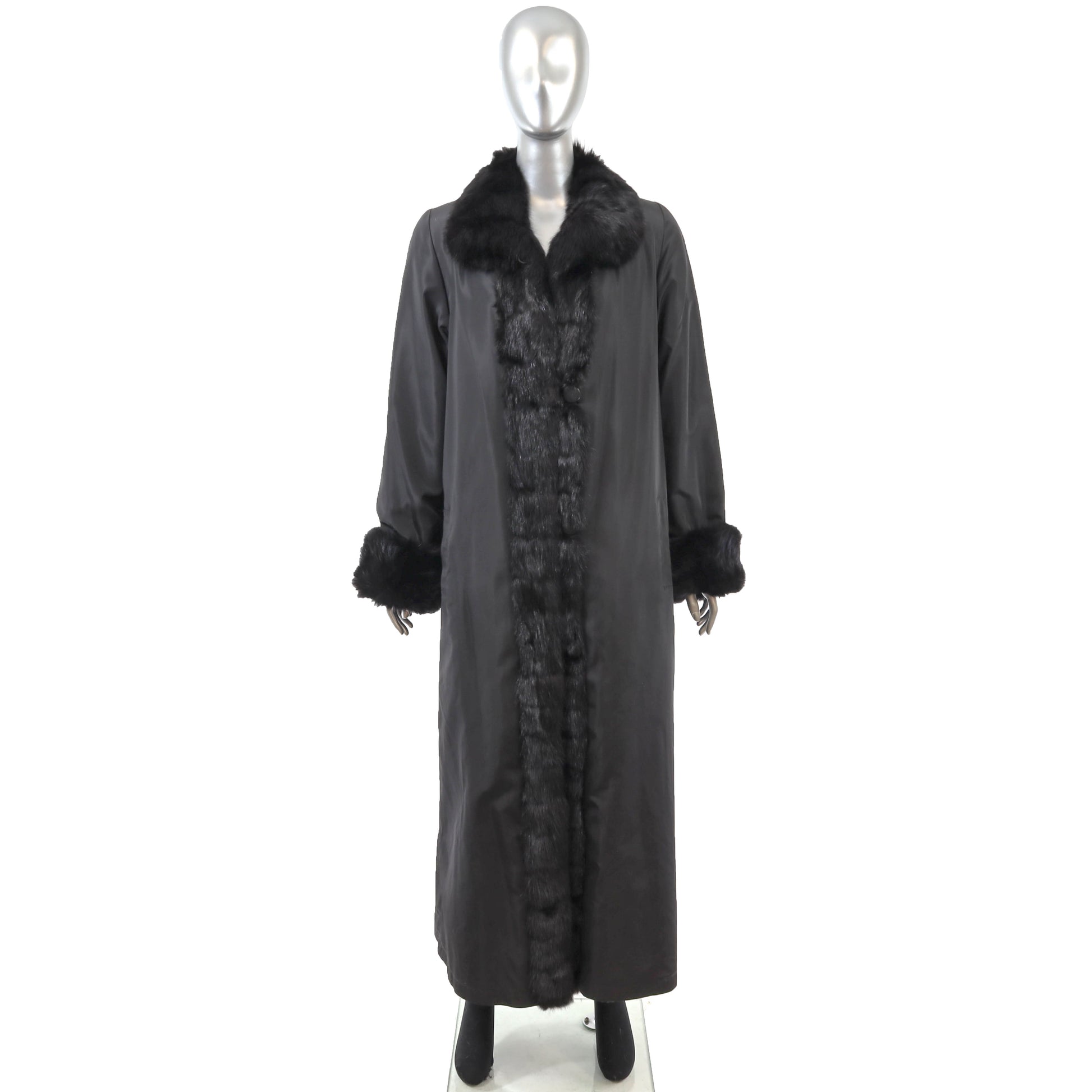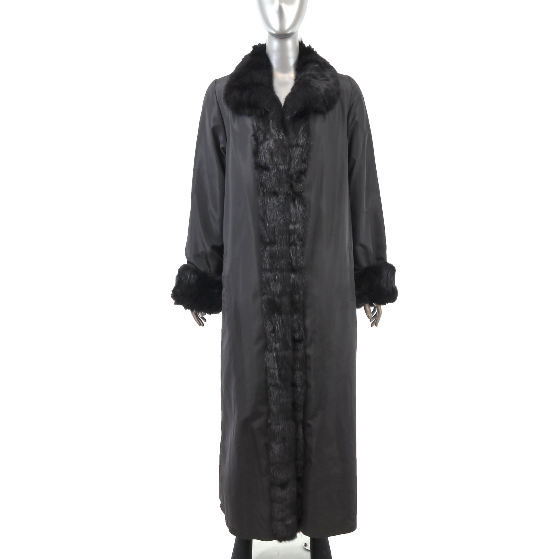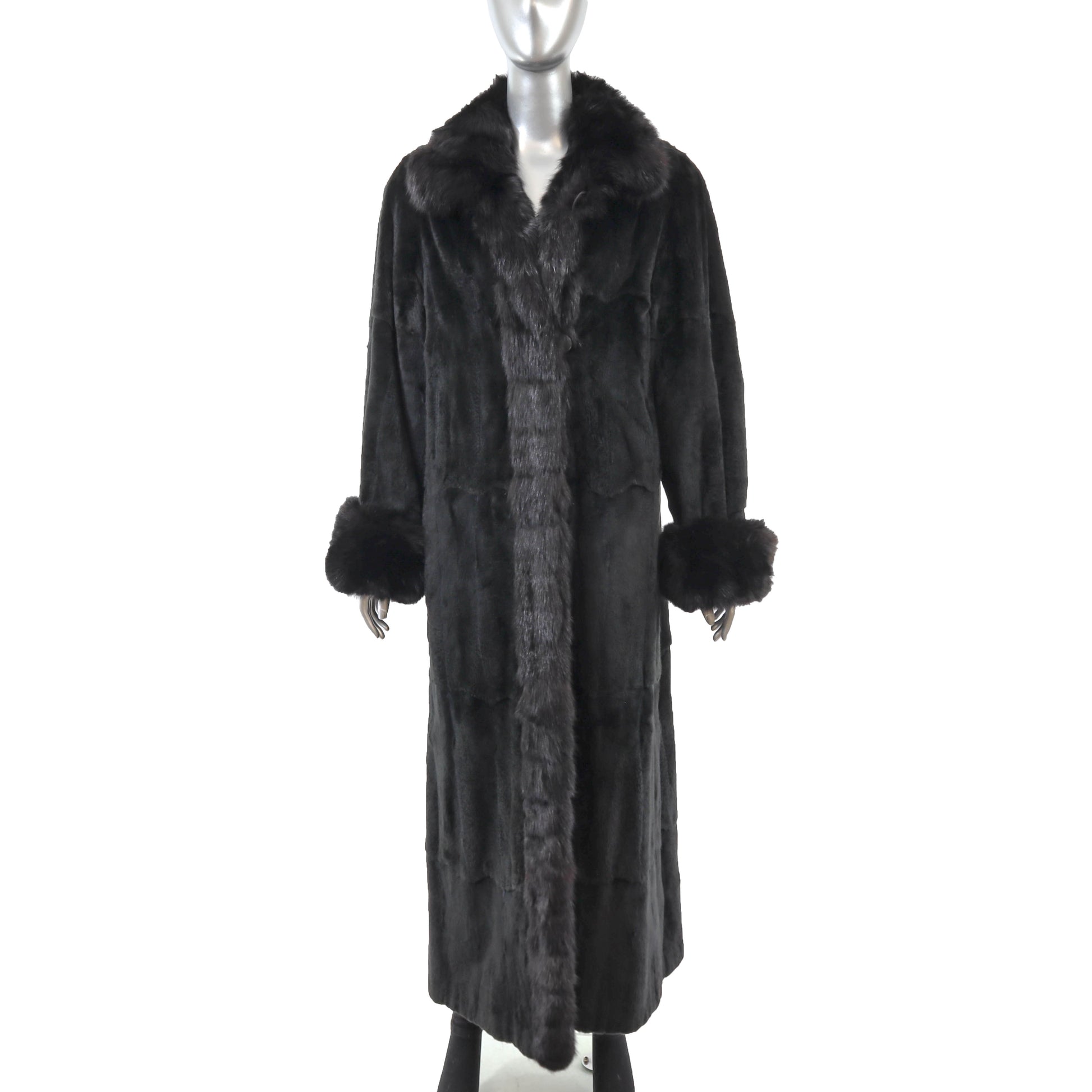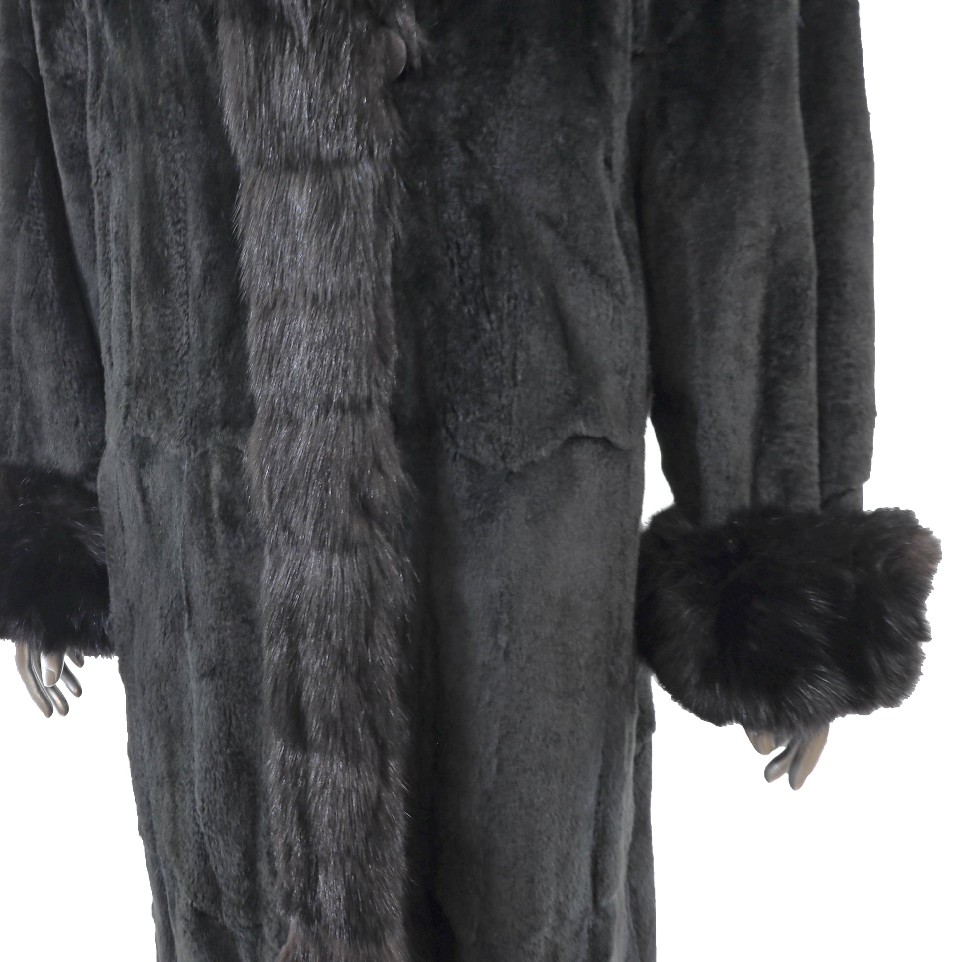 Black Sheared Mink Coat Reversible to Taffeta with Sable Trim- Size M