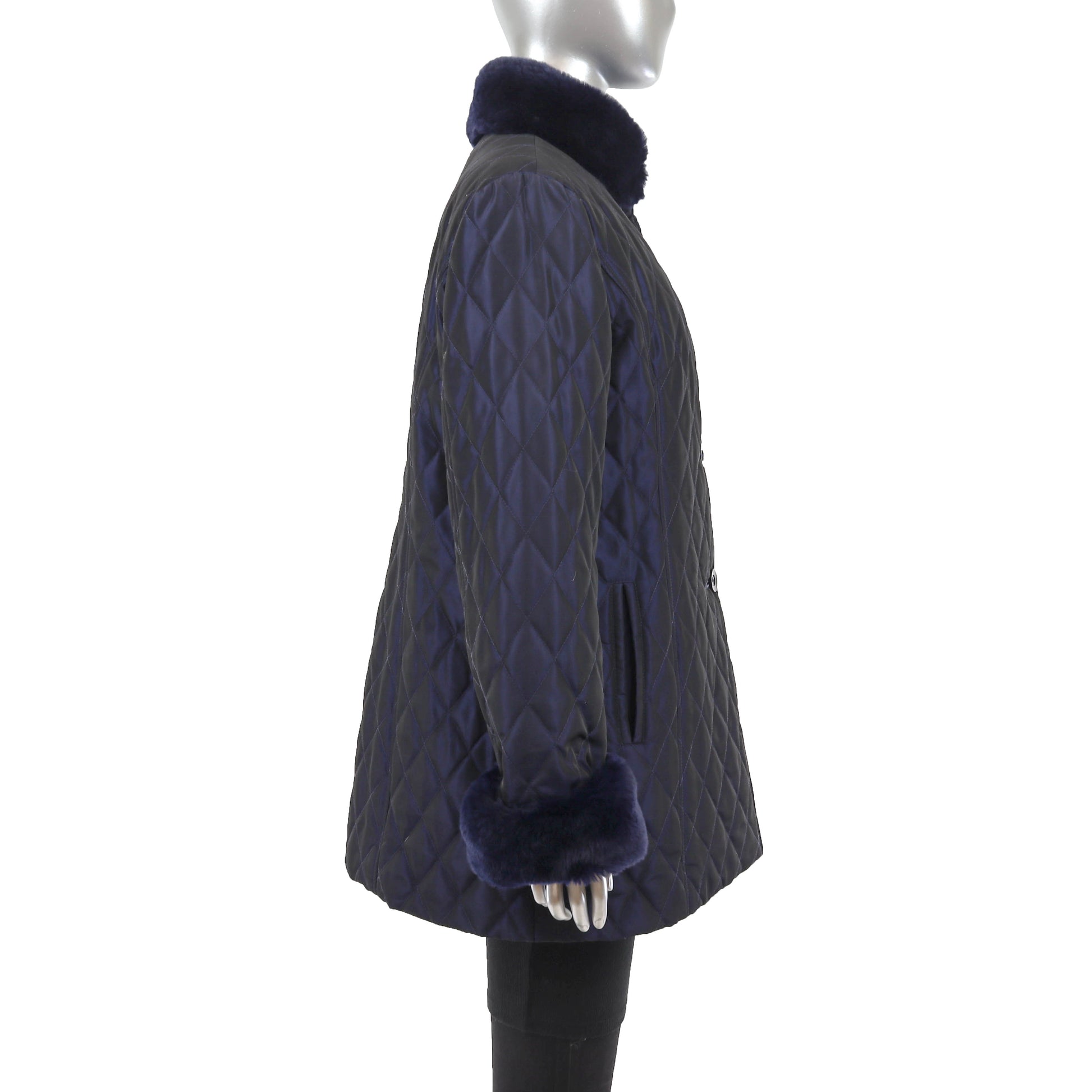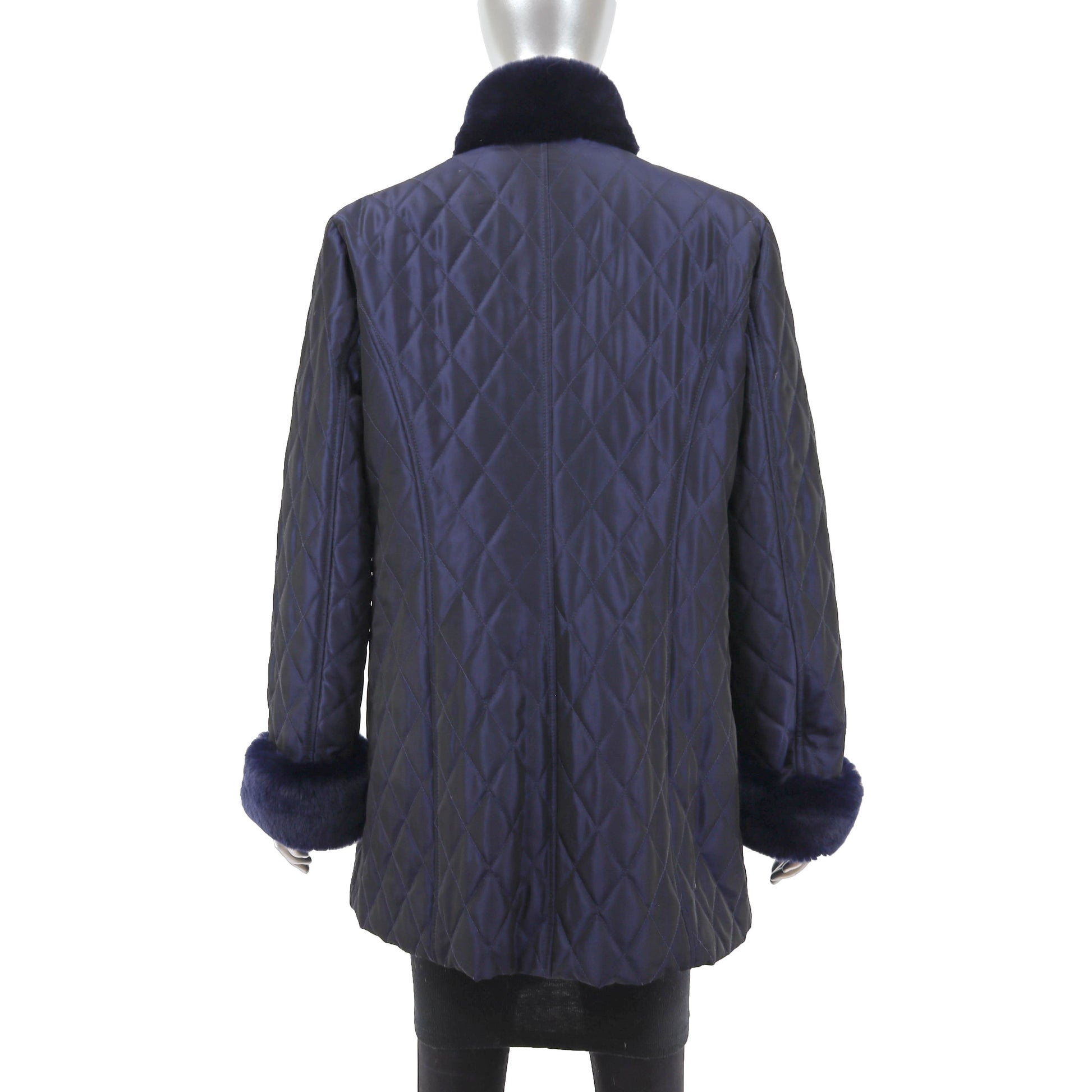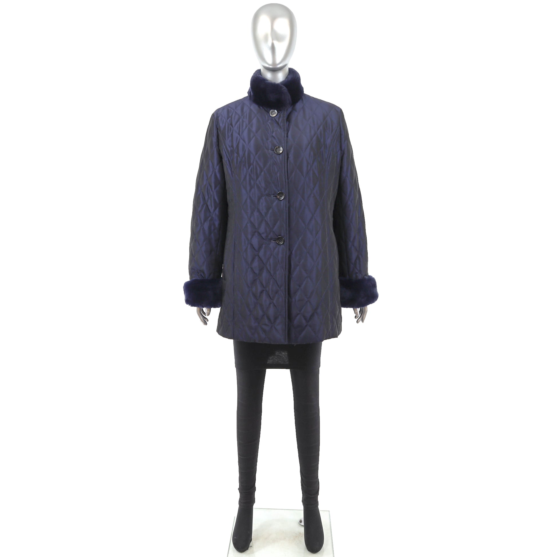 Blue Jacket with Detachable Rabbit Lining and Trim- Size M