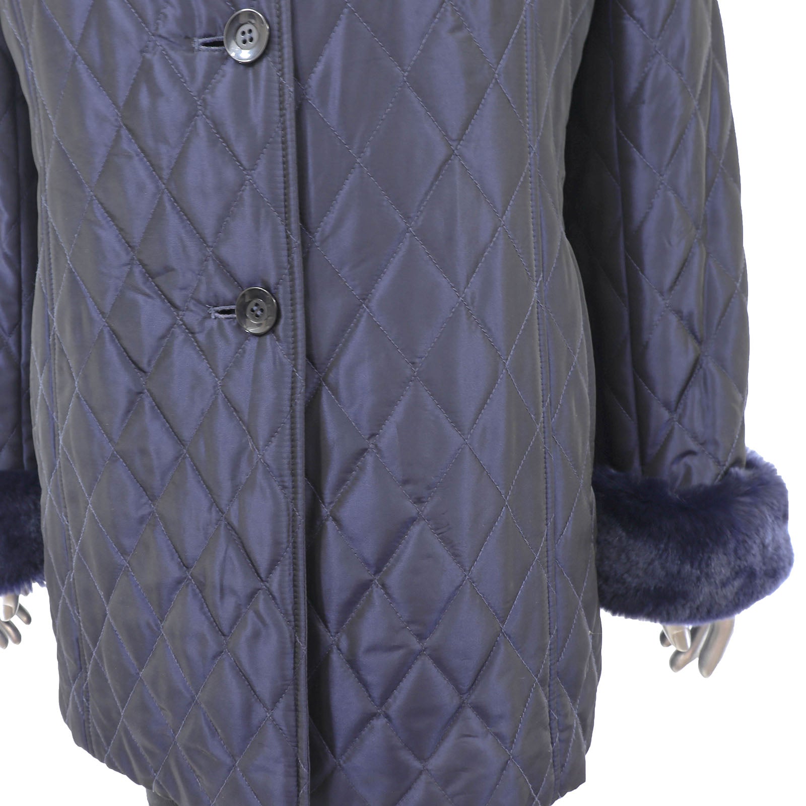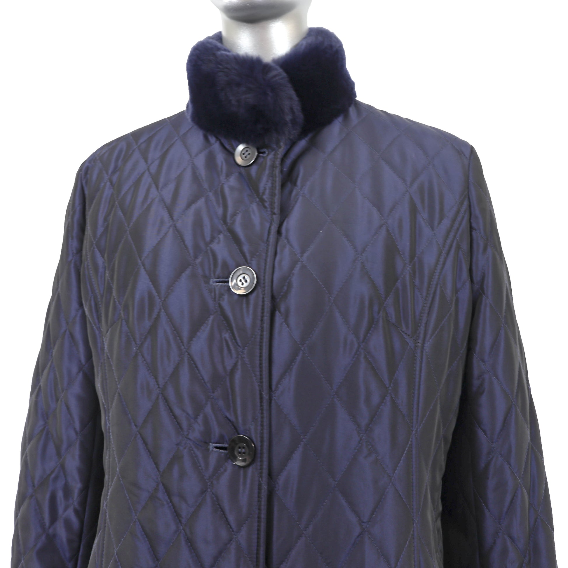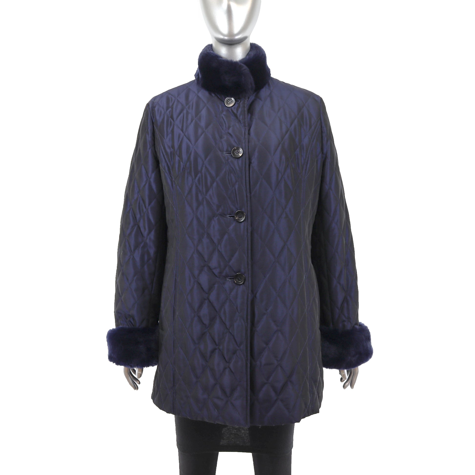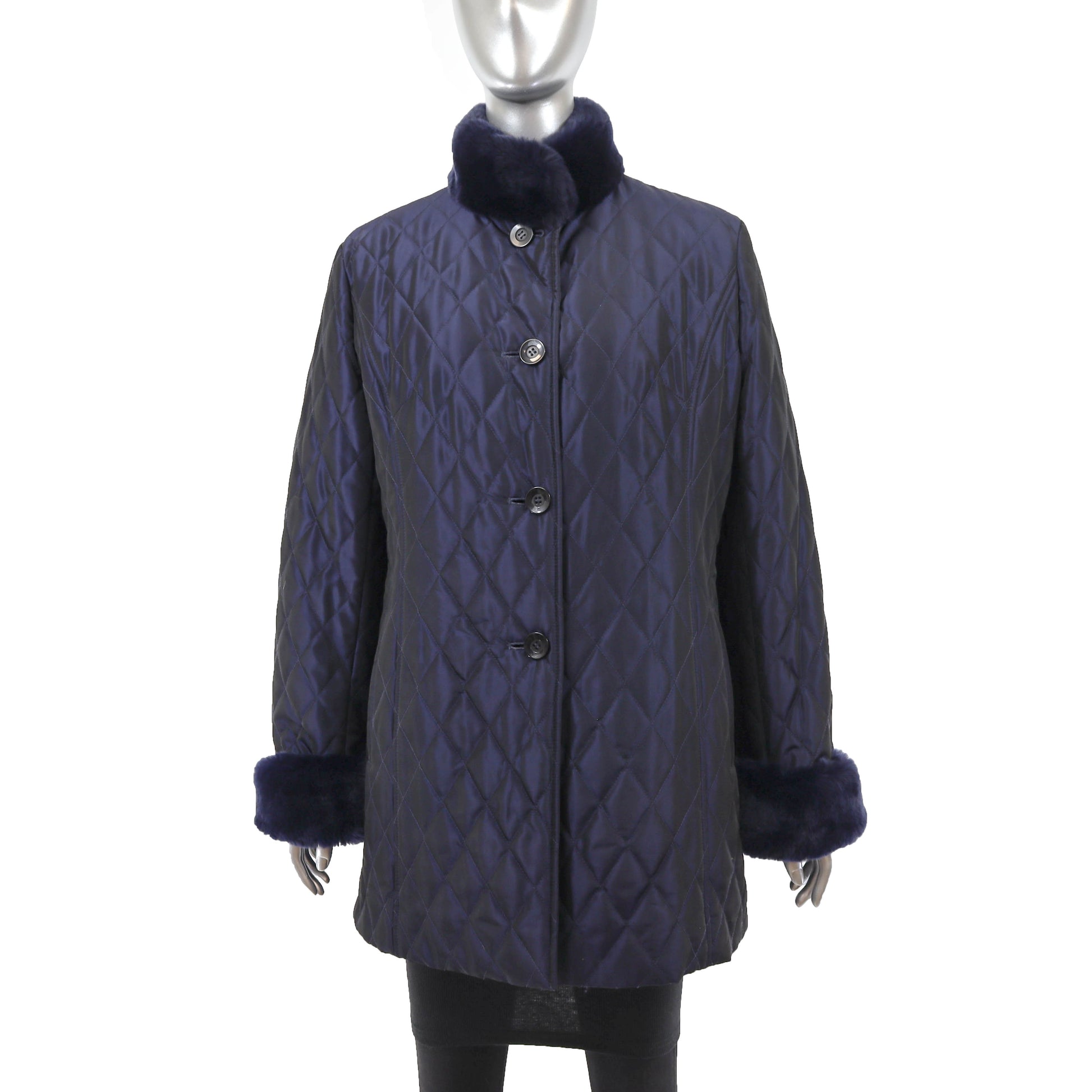 Blue Jacket with Detachable Rabbit Lining and Trim- Size M
