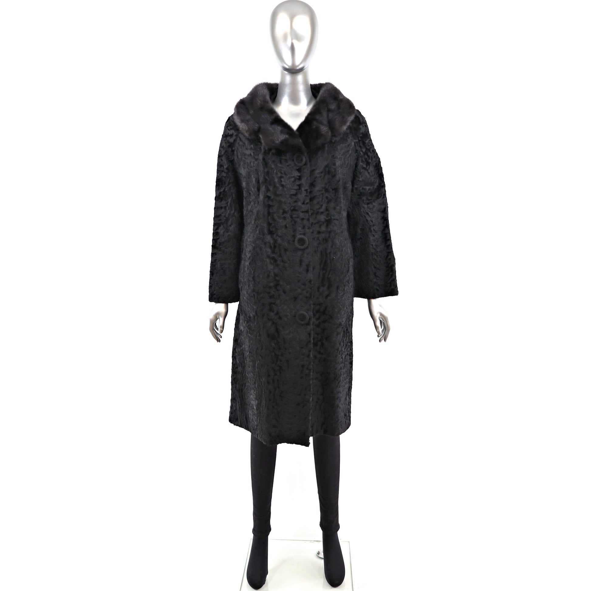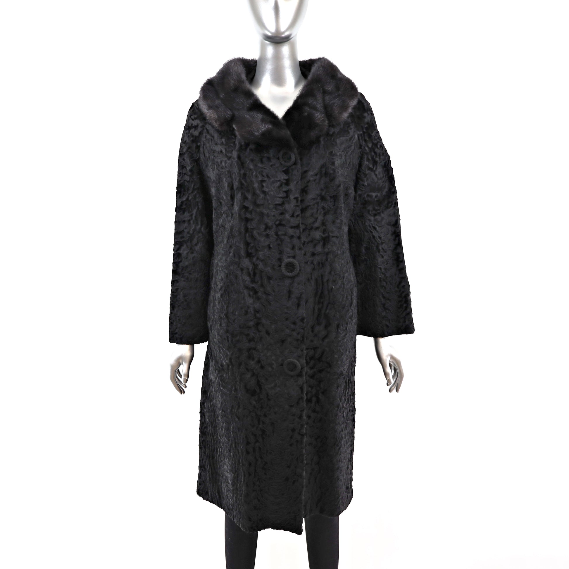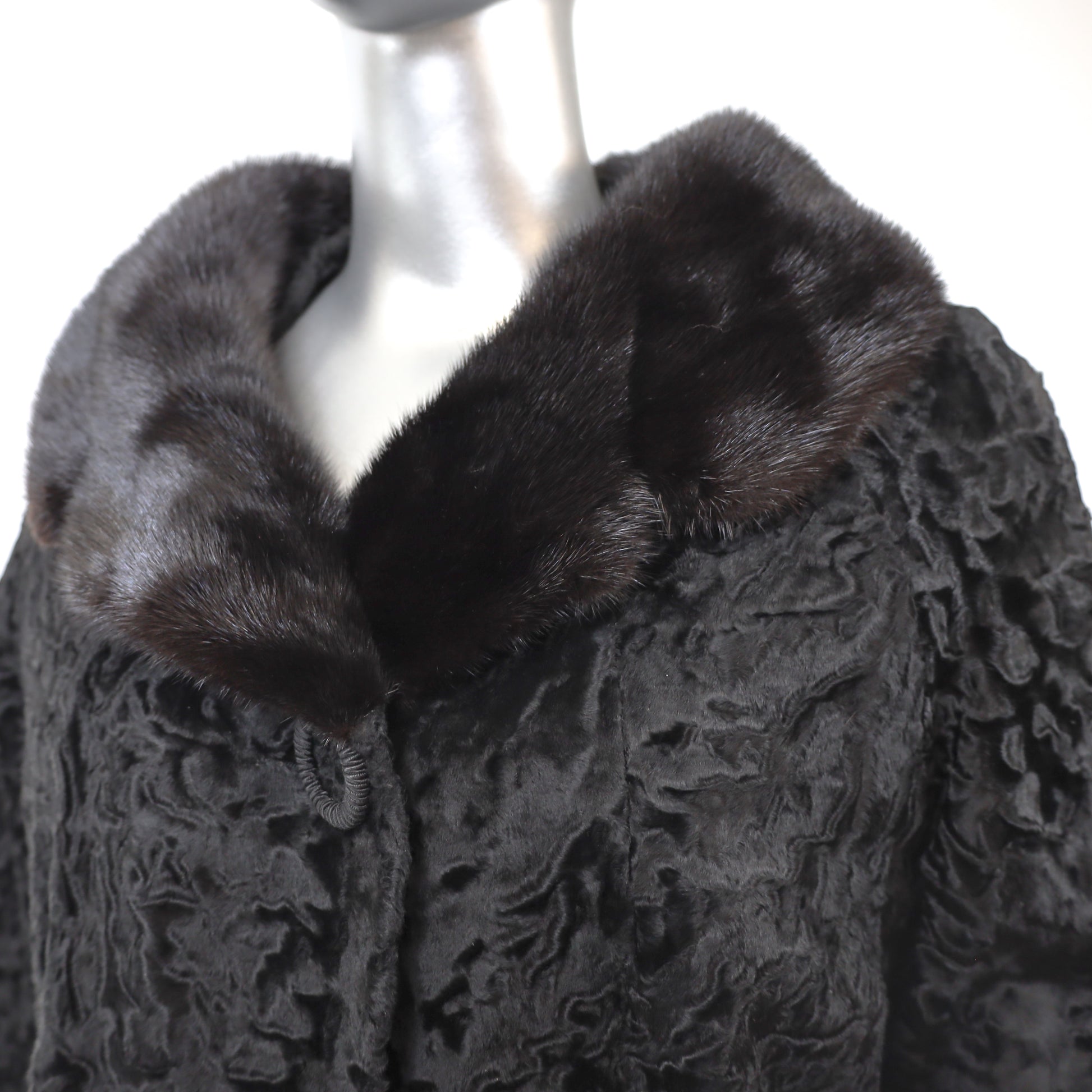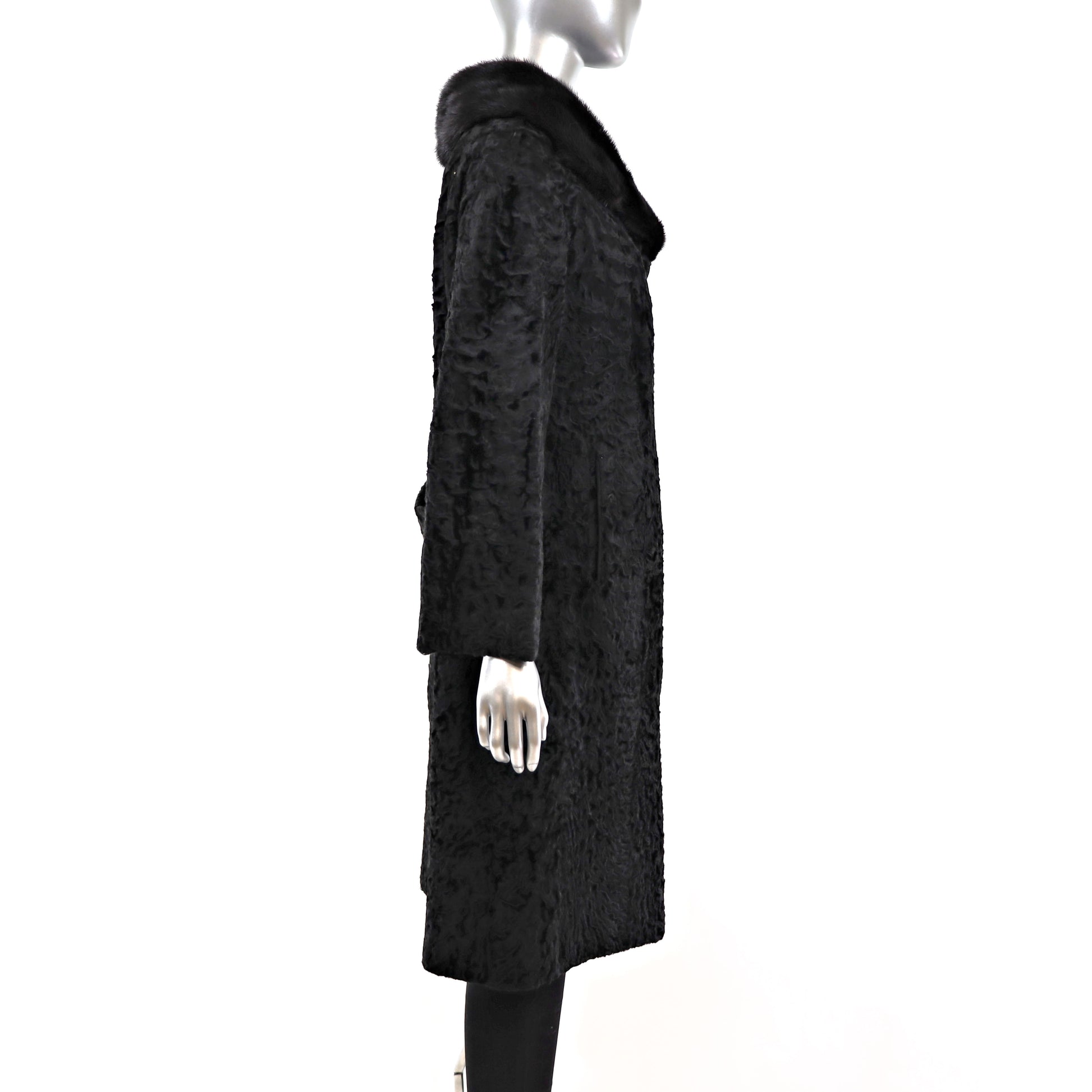 Broadtail Coat with Mink Collar- Size L