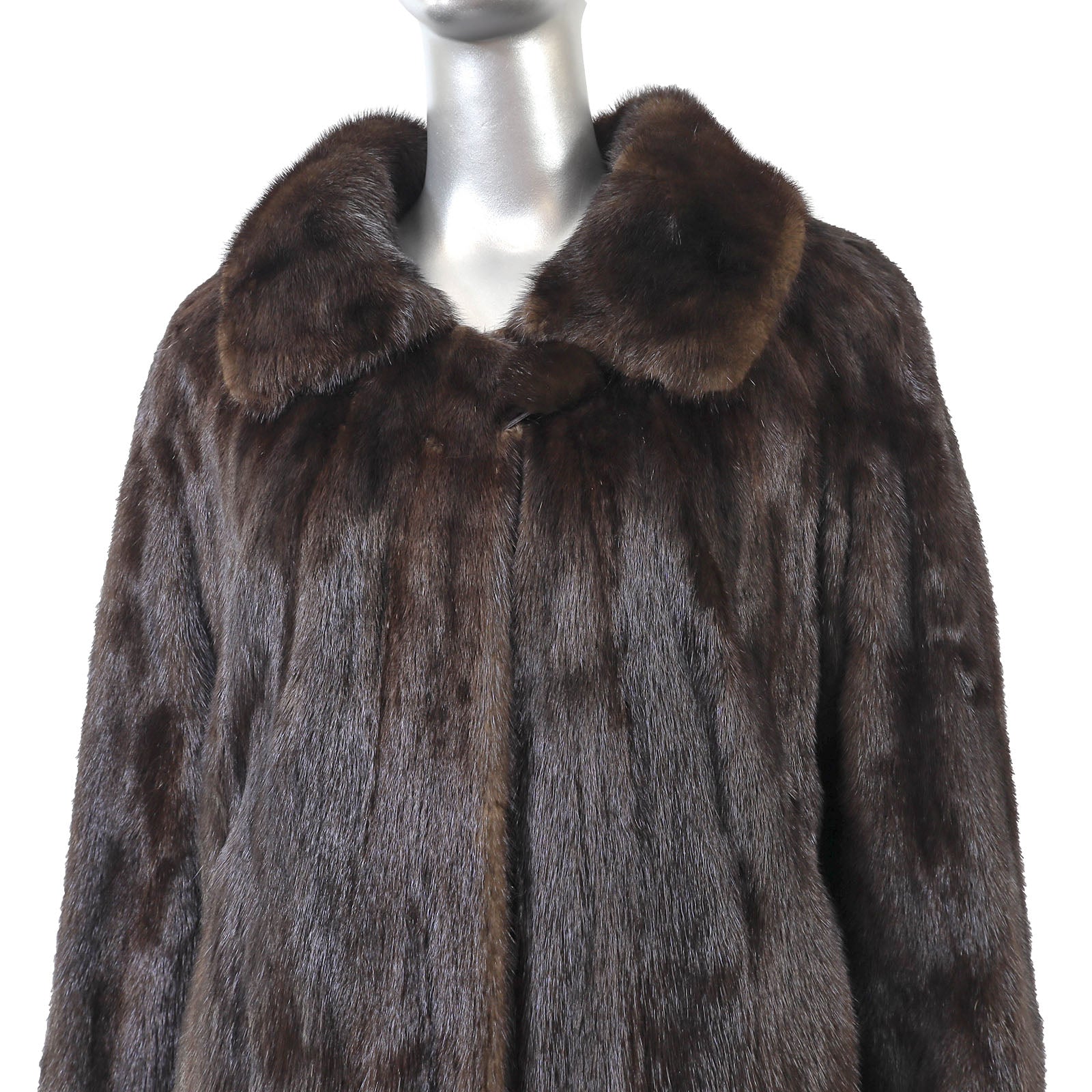 This coat is soft, supple, and well-cared for by its previous owner. It has been stored in cold storage, ensuring its longevity for many years to come.