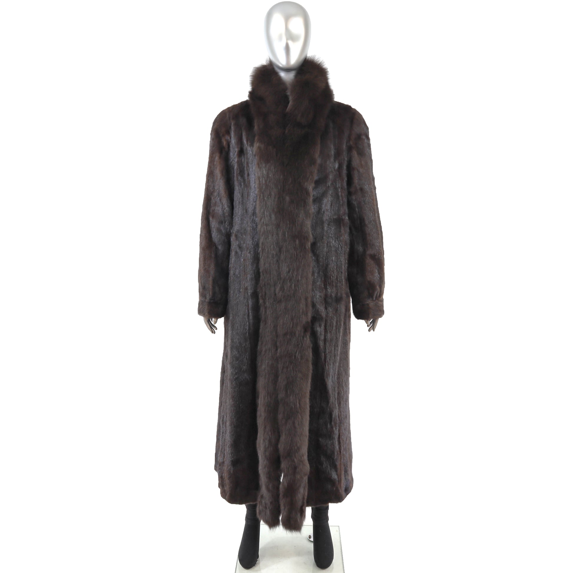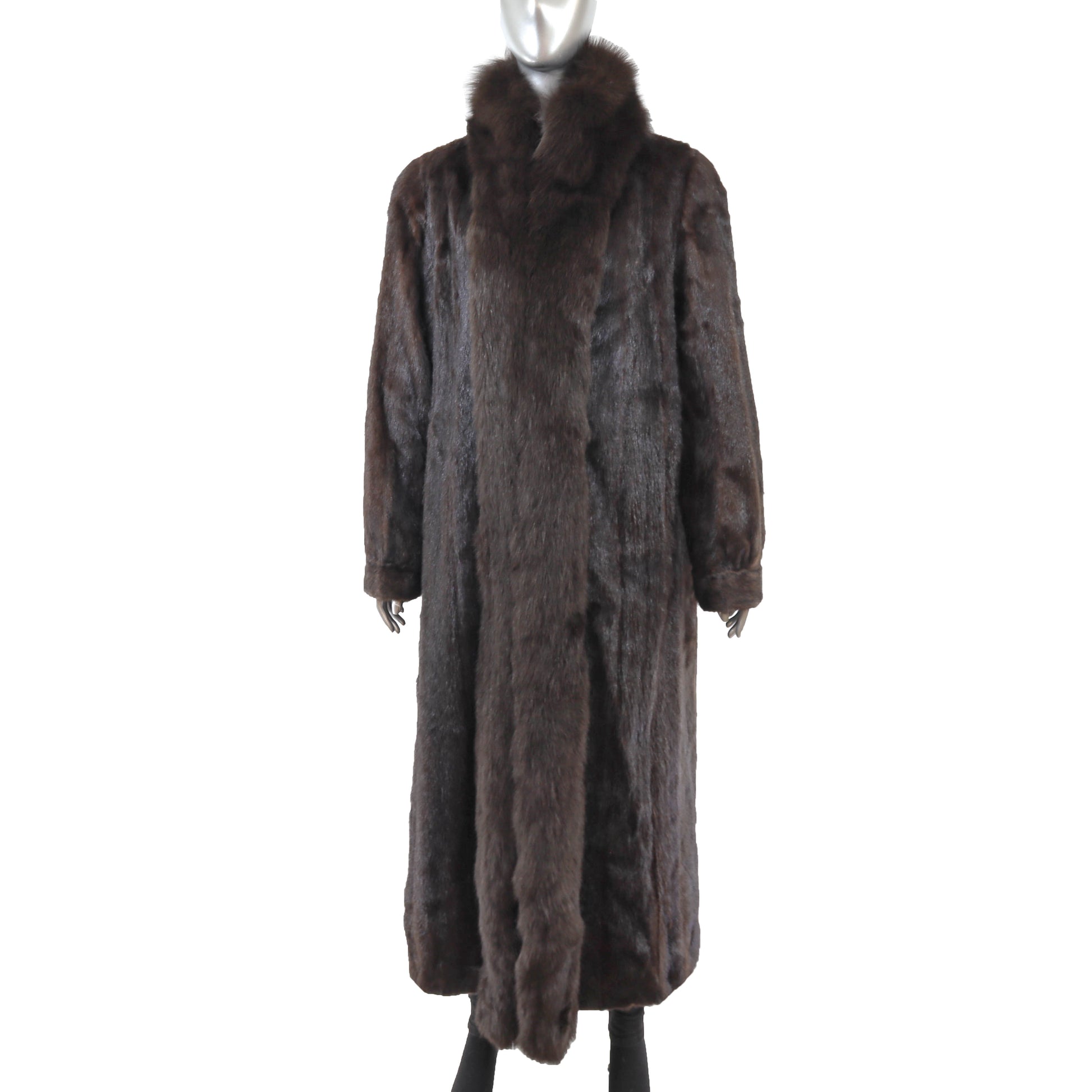 Brown Mink Coat with Fox Tuxedo- Size XL