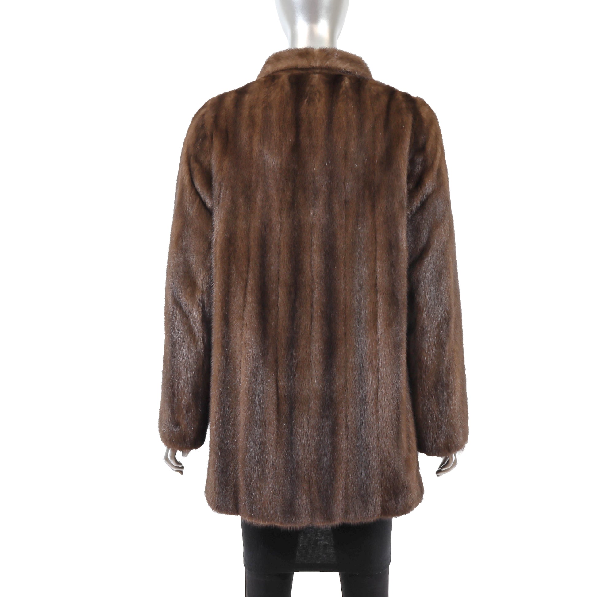 This jacket is soft, supple, and well-cared for by its previous owner. It has been stored in cold storage, ensuring its longevity for many years to come.