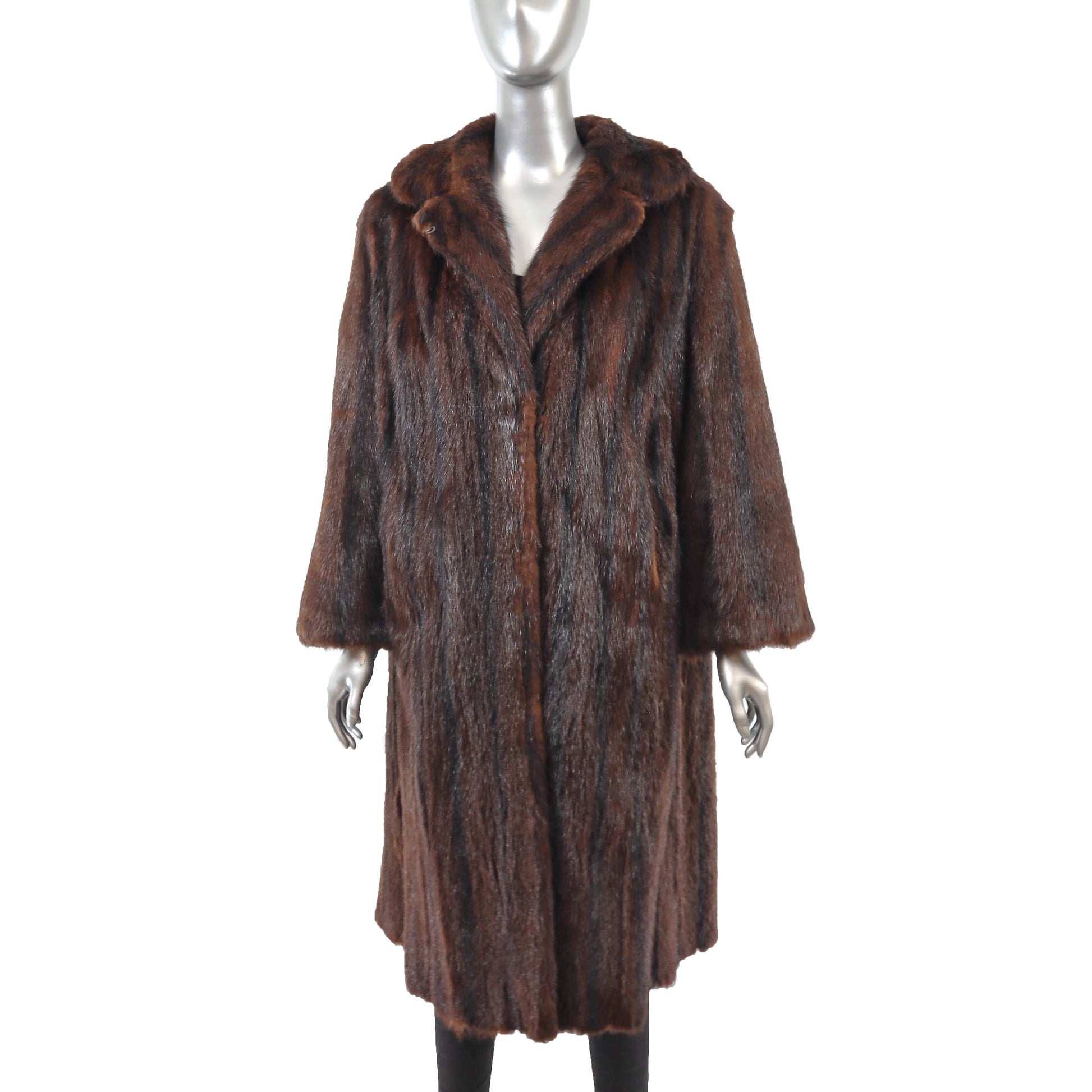 This coat is soft, supple, and well-cared for by its previous owner. It has been stored in cold storage, ensuring its longevity for many years to come.