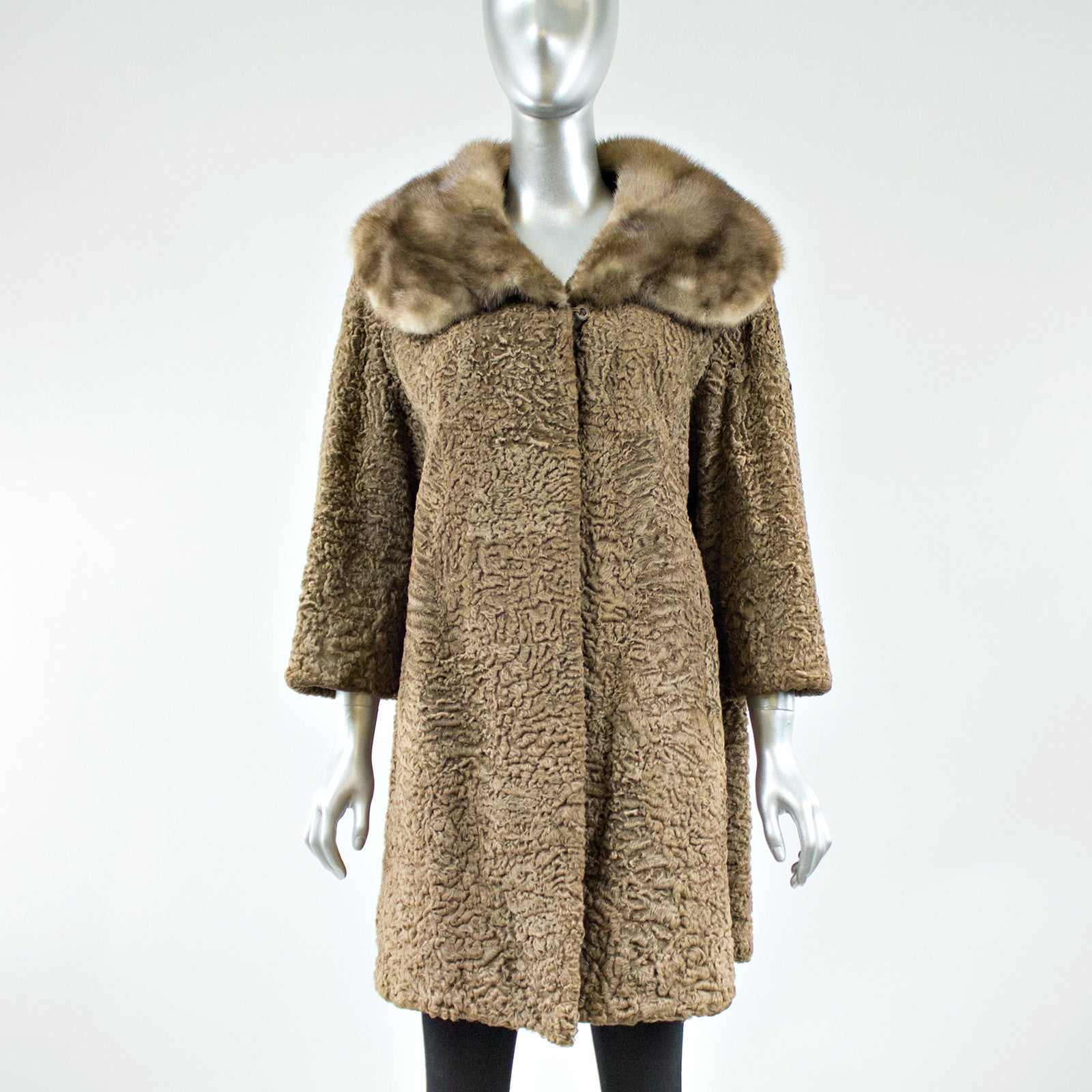 Coffee Color Persian Lamb Fur Jacket - Size S