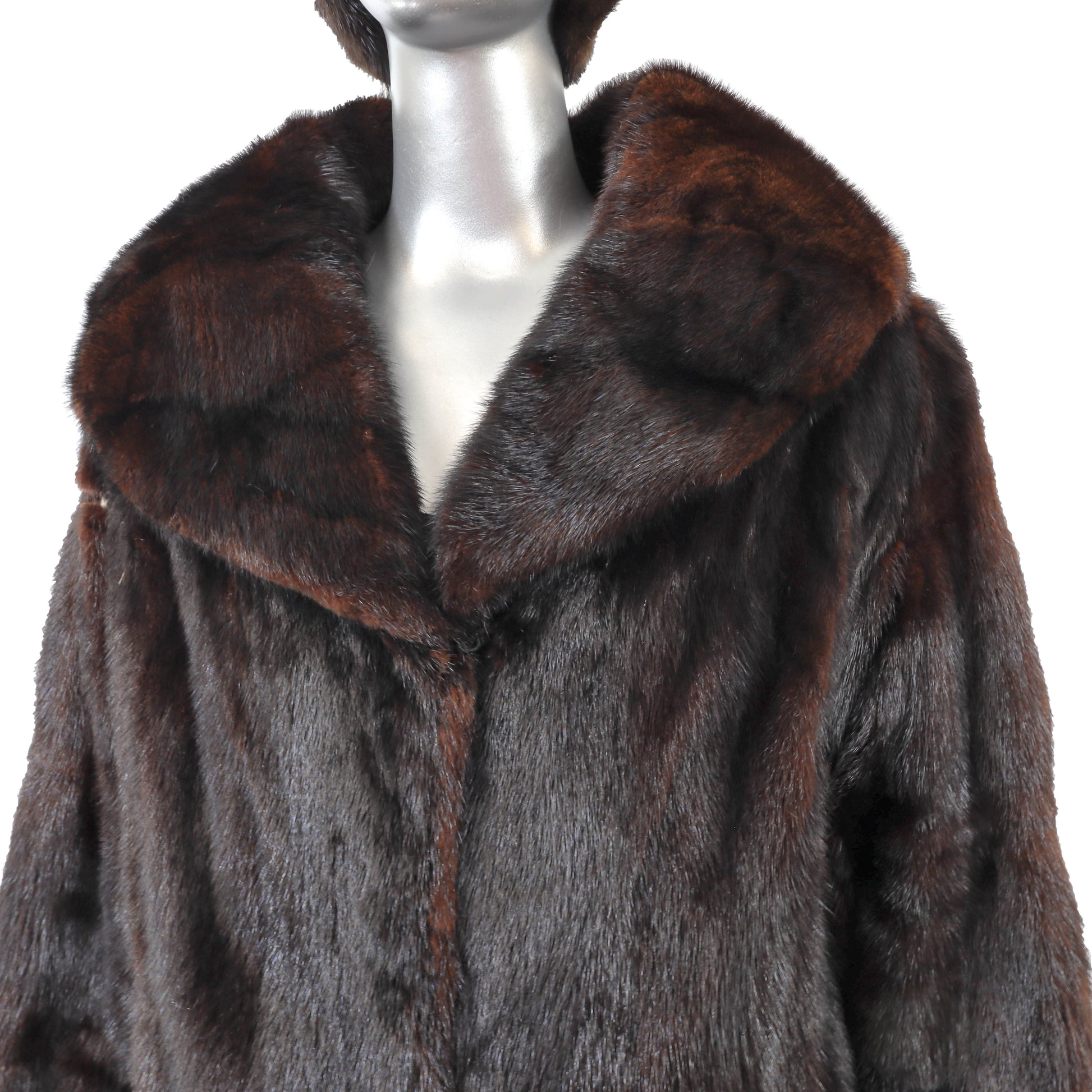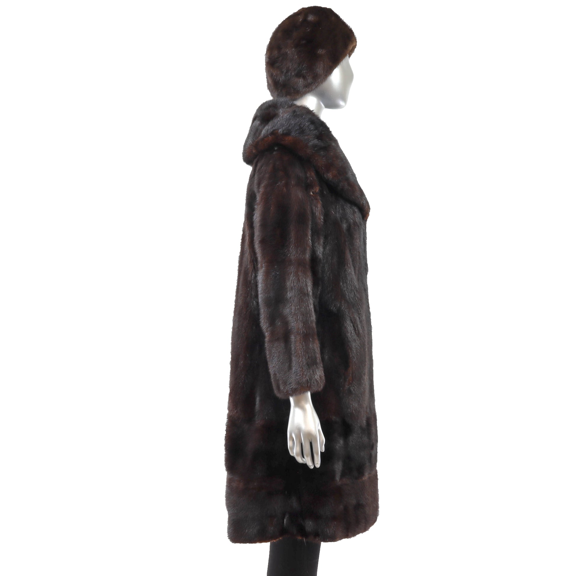 Dark Brown Mink 3/4 Coat with Matching Hat- Size L