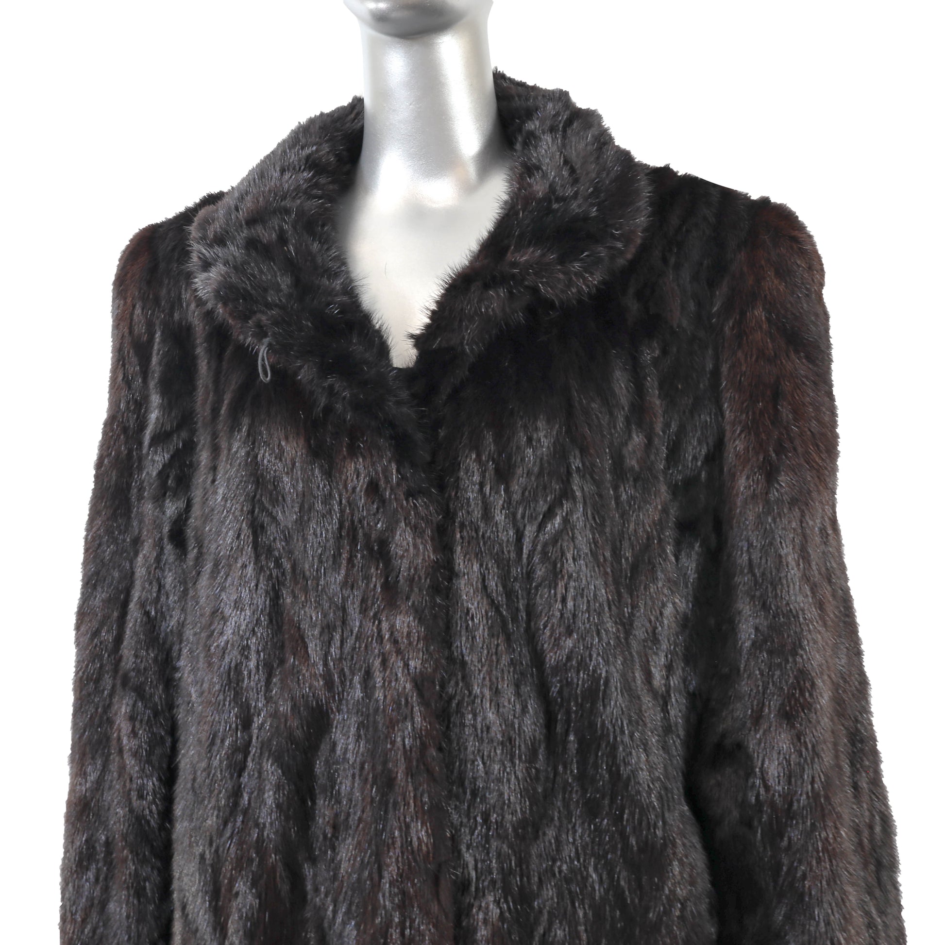 This coat is soft, supple, and well-cared for by its previous owner. It has been stored in cold storage, ensuring its longevity for many years to come.