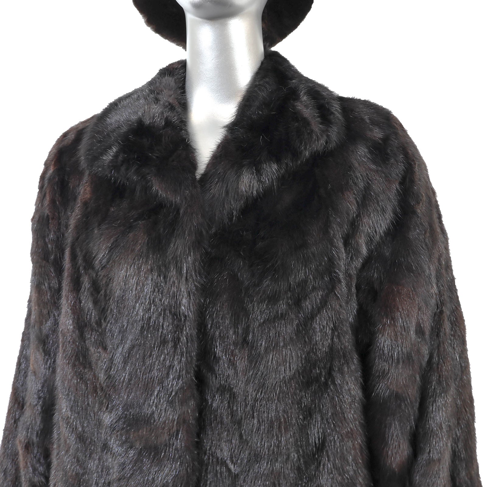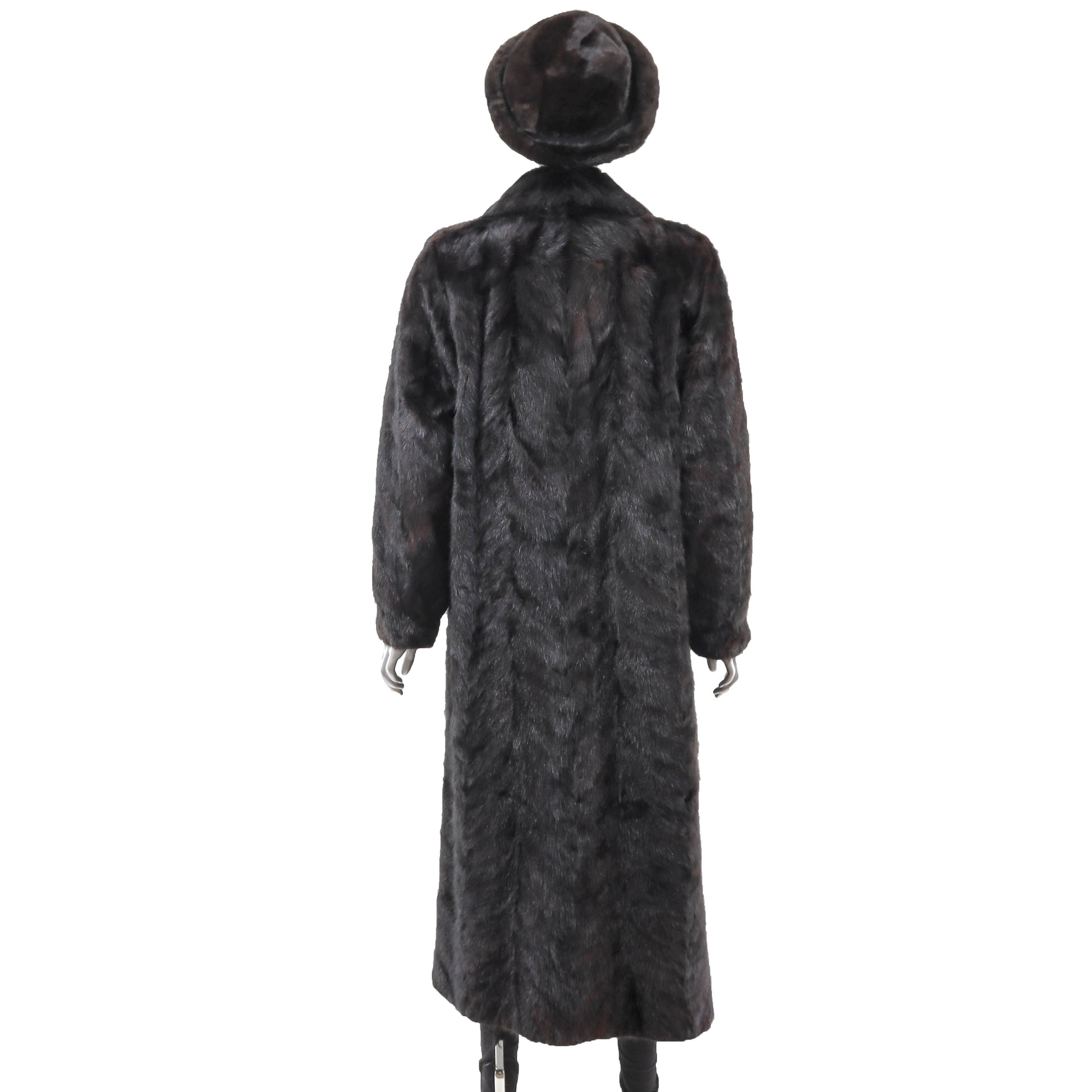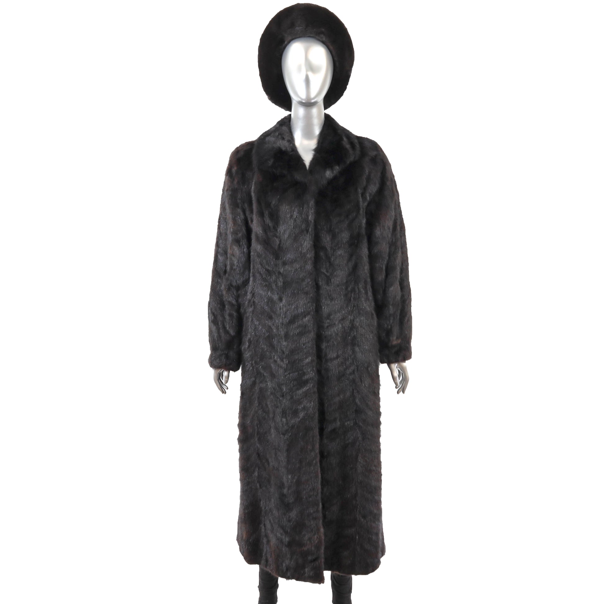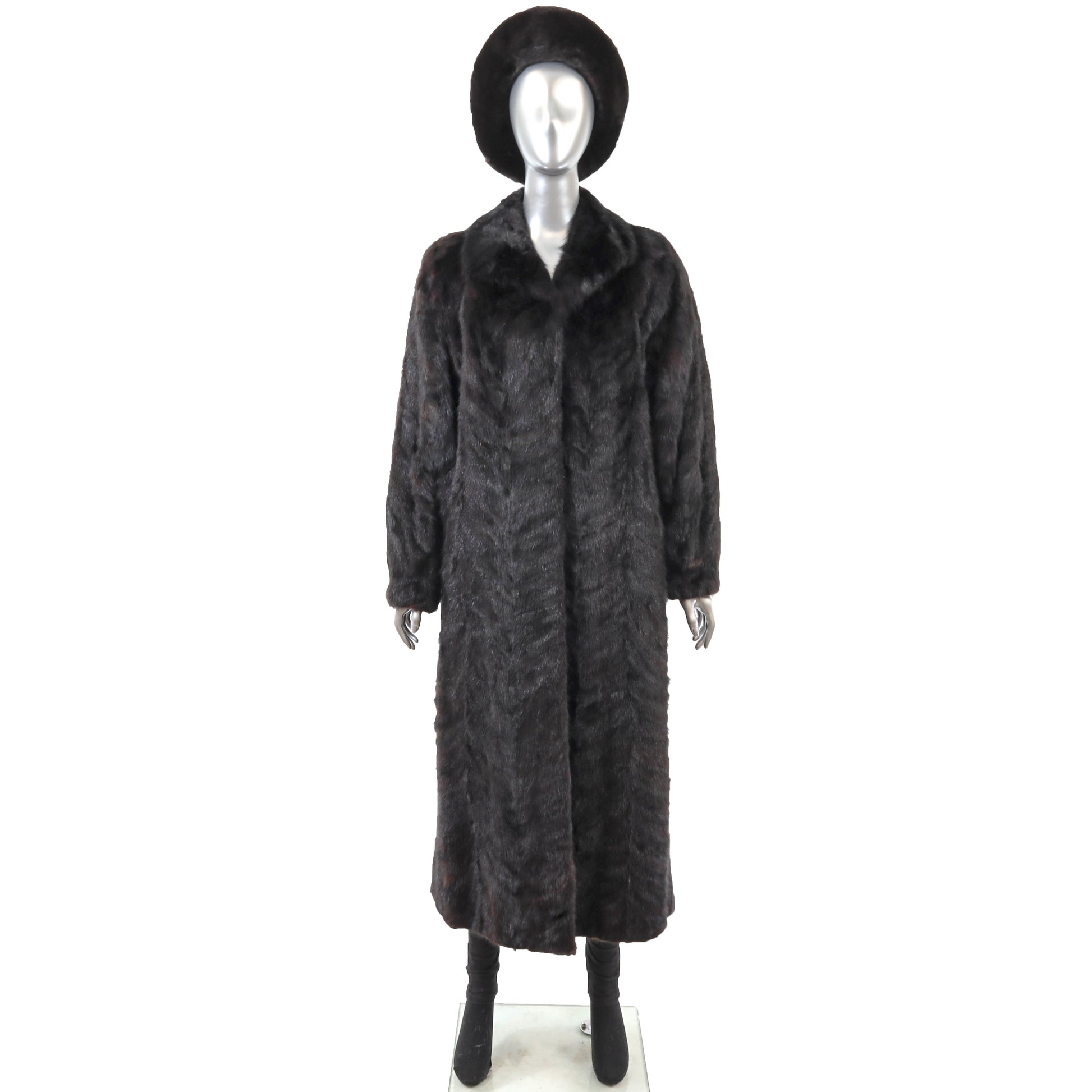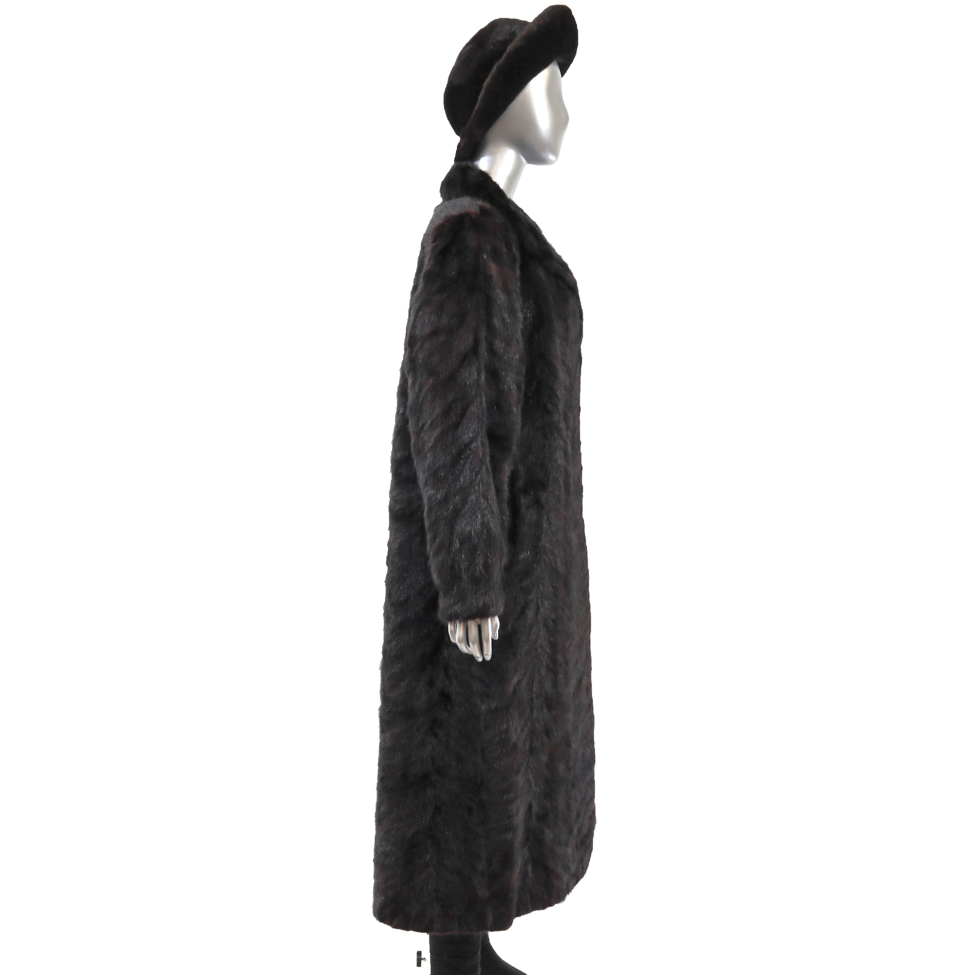 Dark Brown Section Mink Coat with Matching Hat- Size M