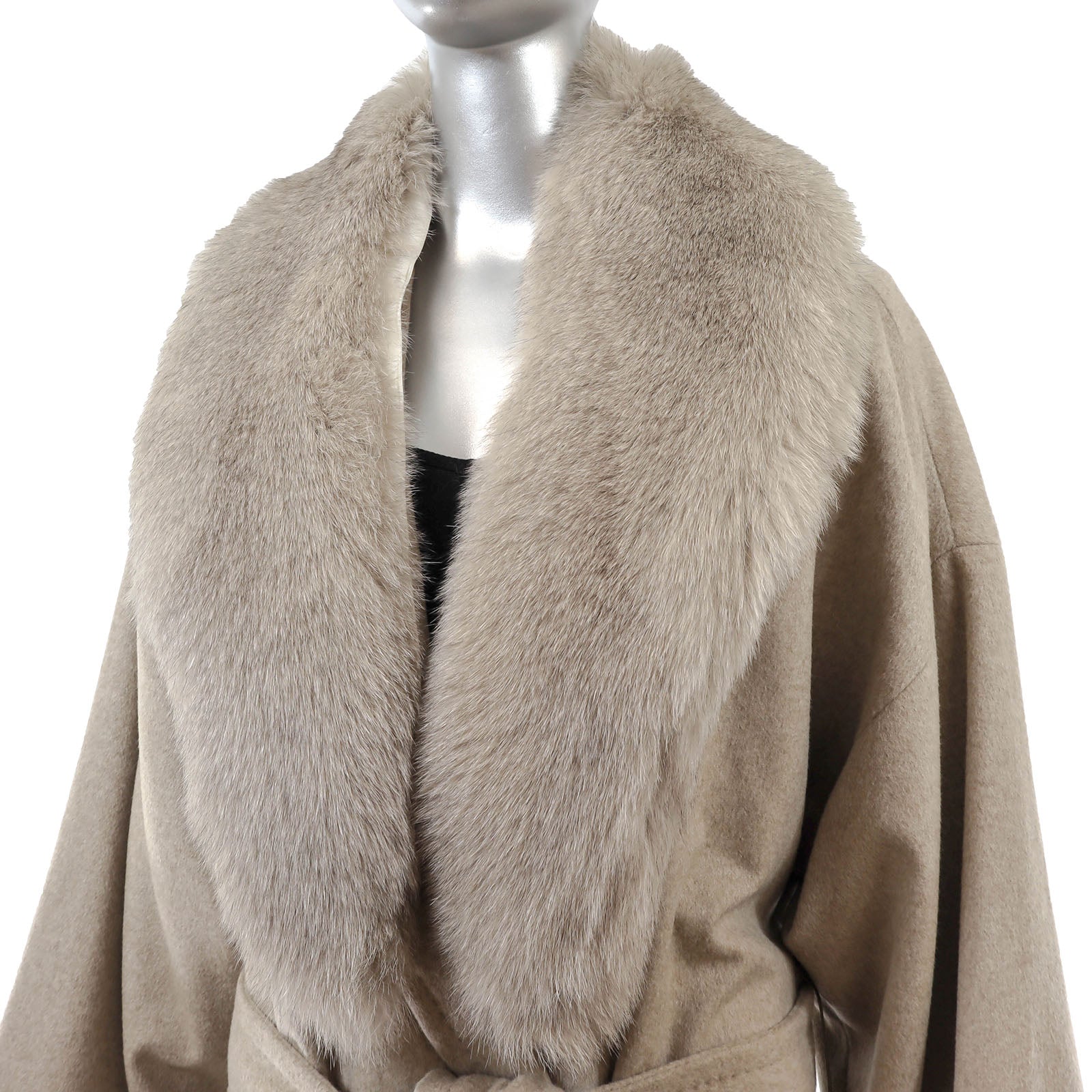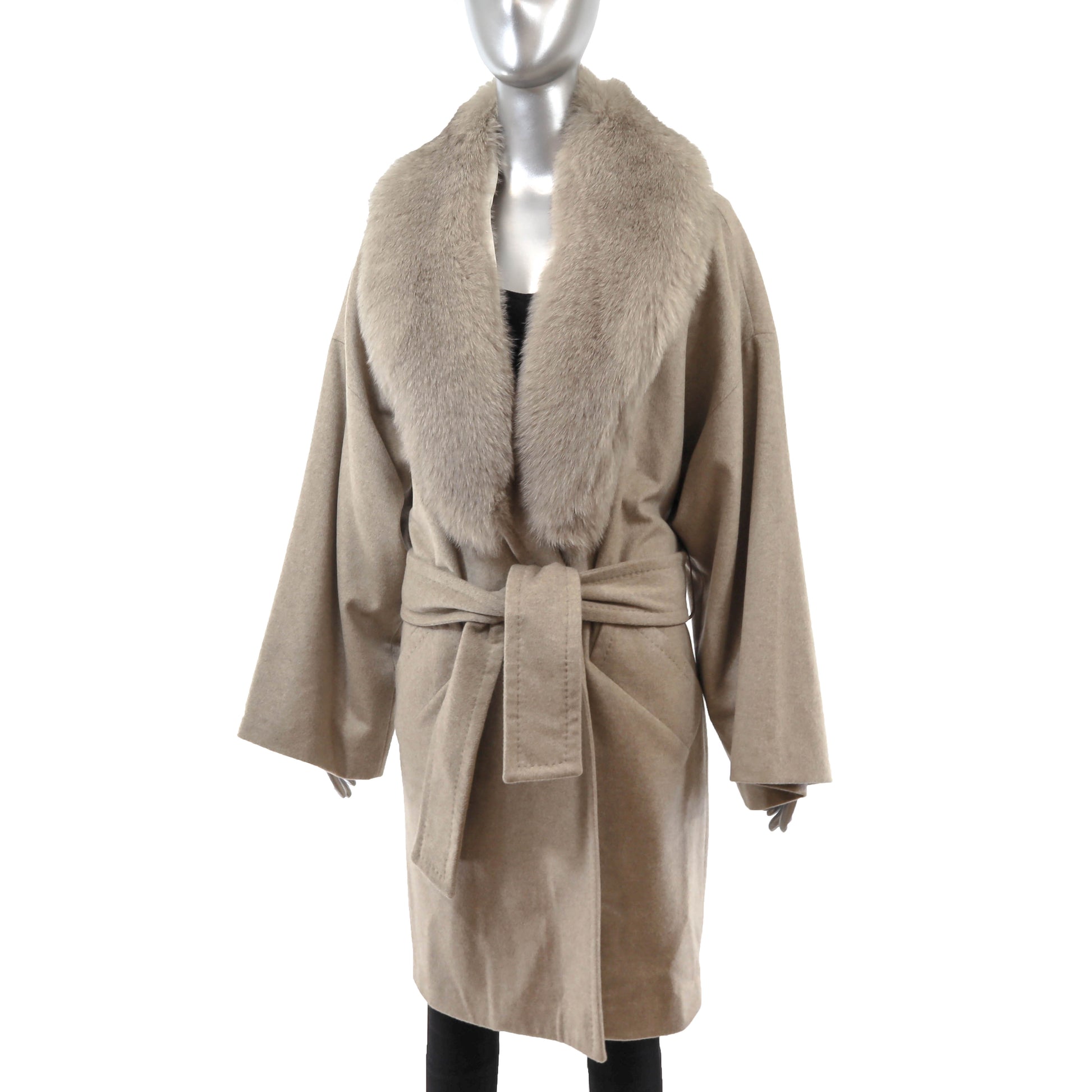 Grey Cashmere Coat with Detachable Fox Collar- Size S-M