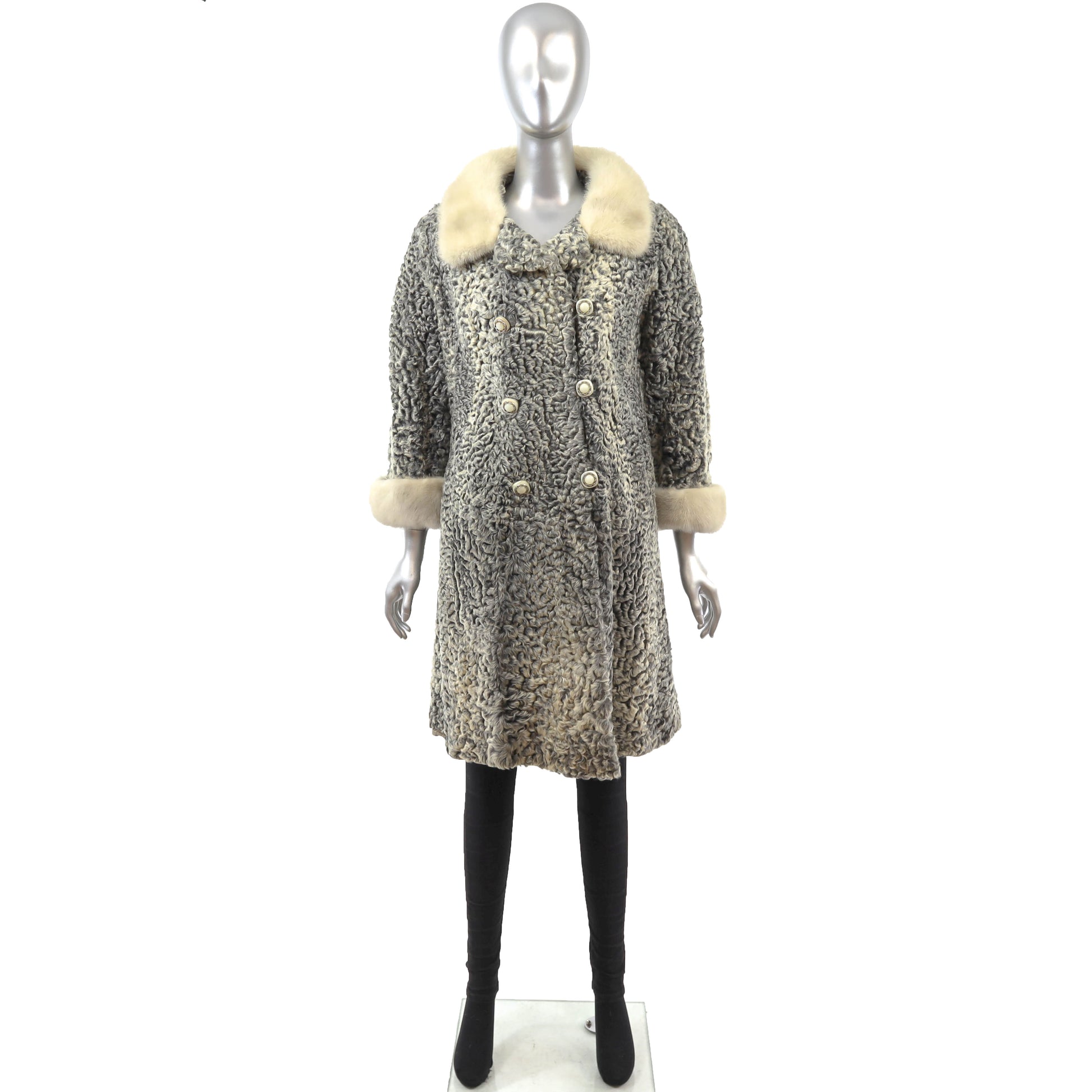 Grey Persian Lamb Coat with Mink Trim- Size M
