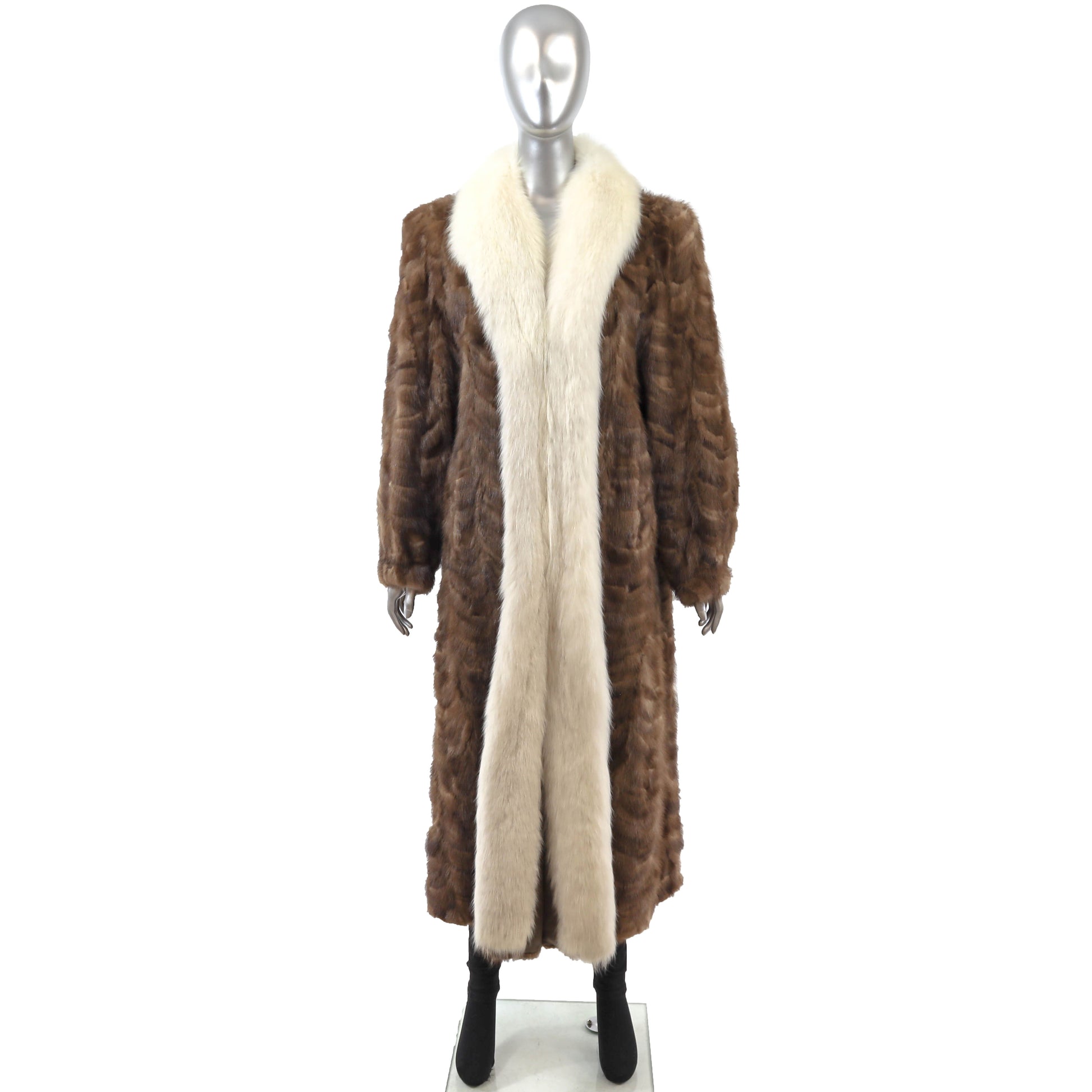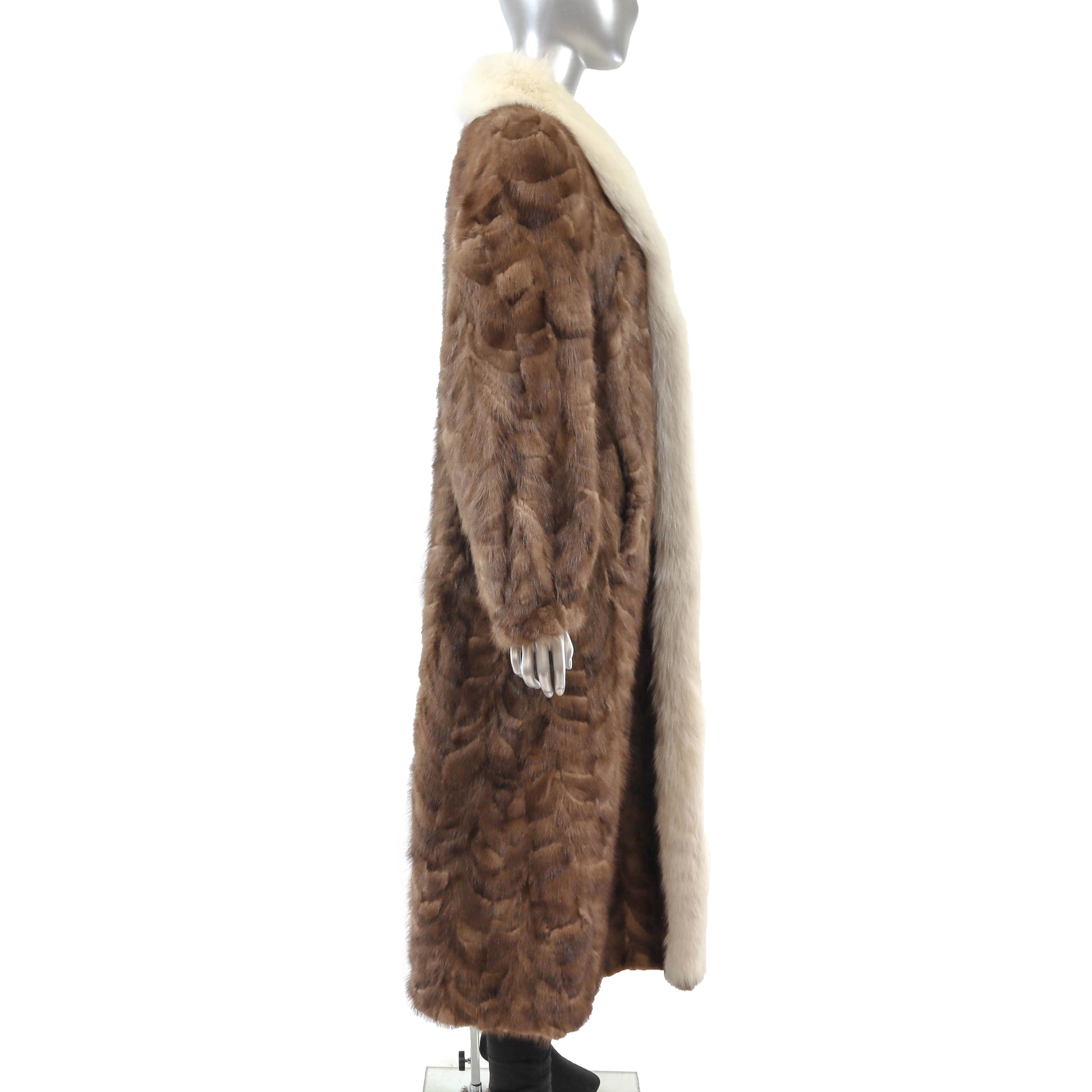 Light Brown Section Mink Coat with Fox Tuxedo- Size M