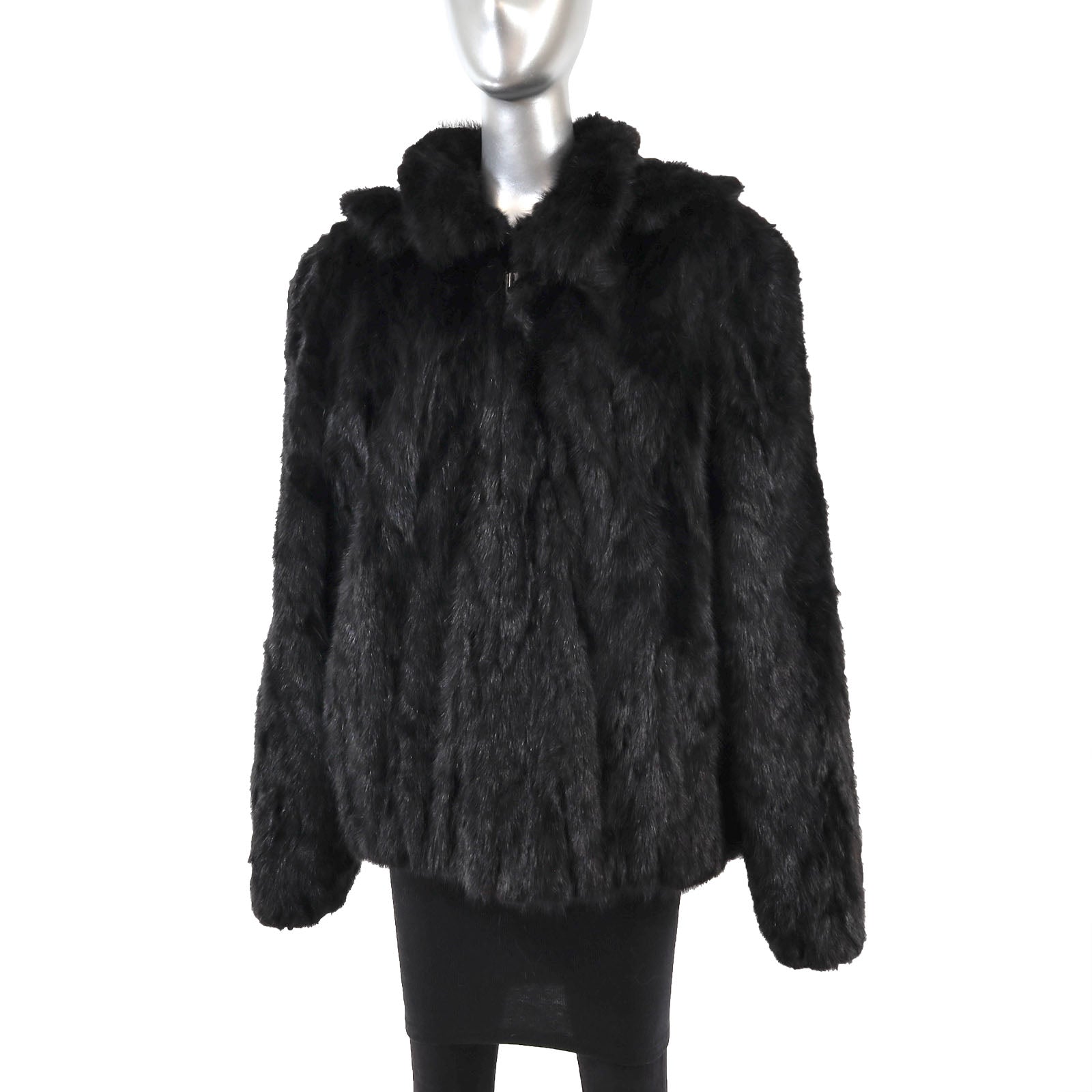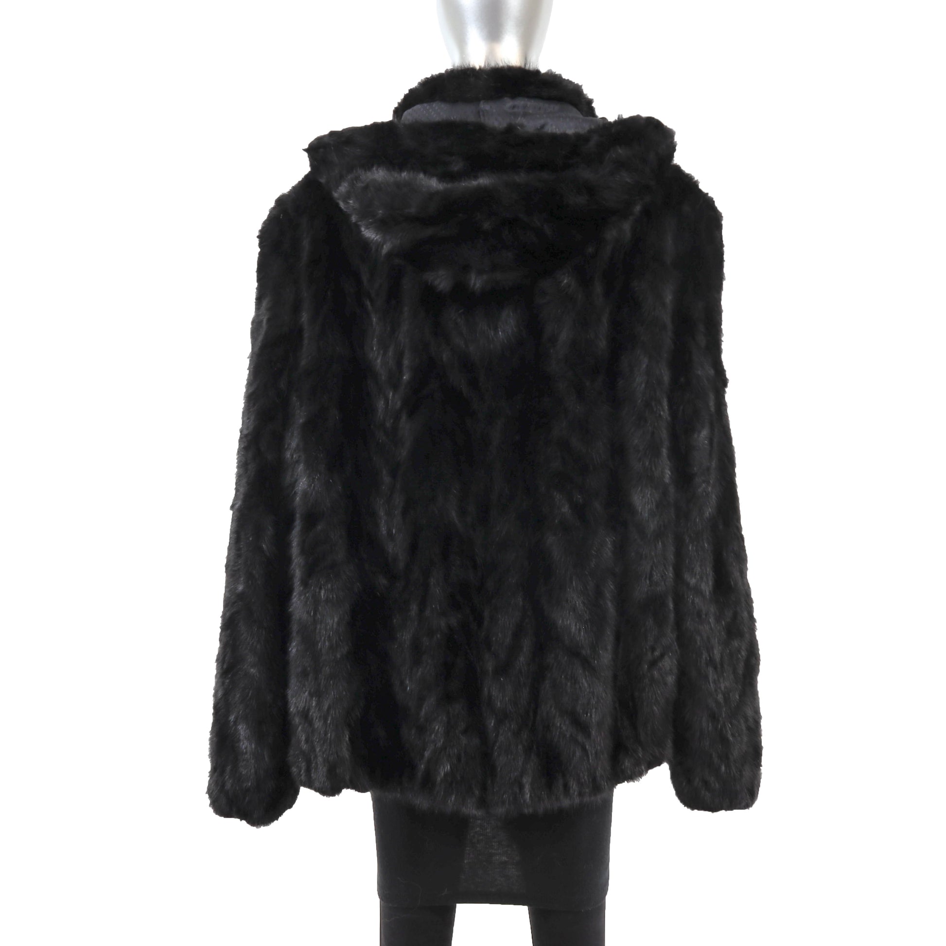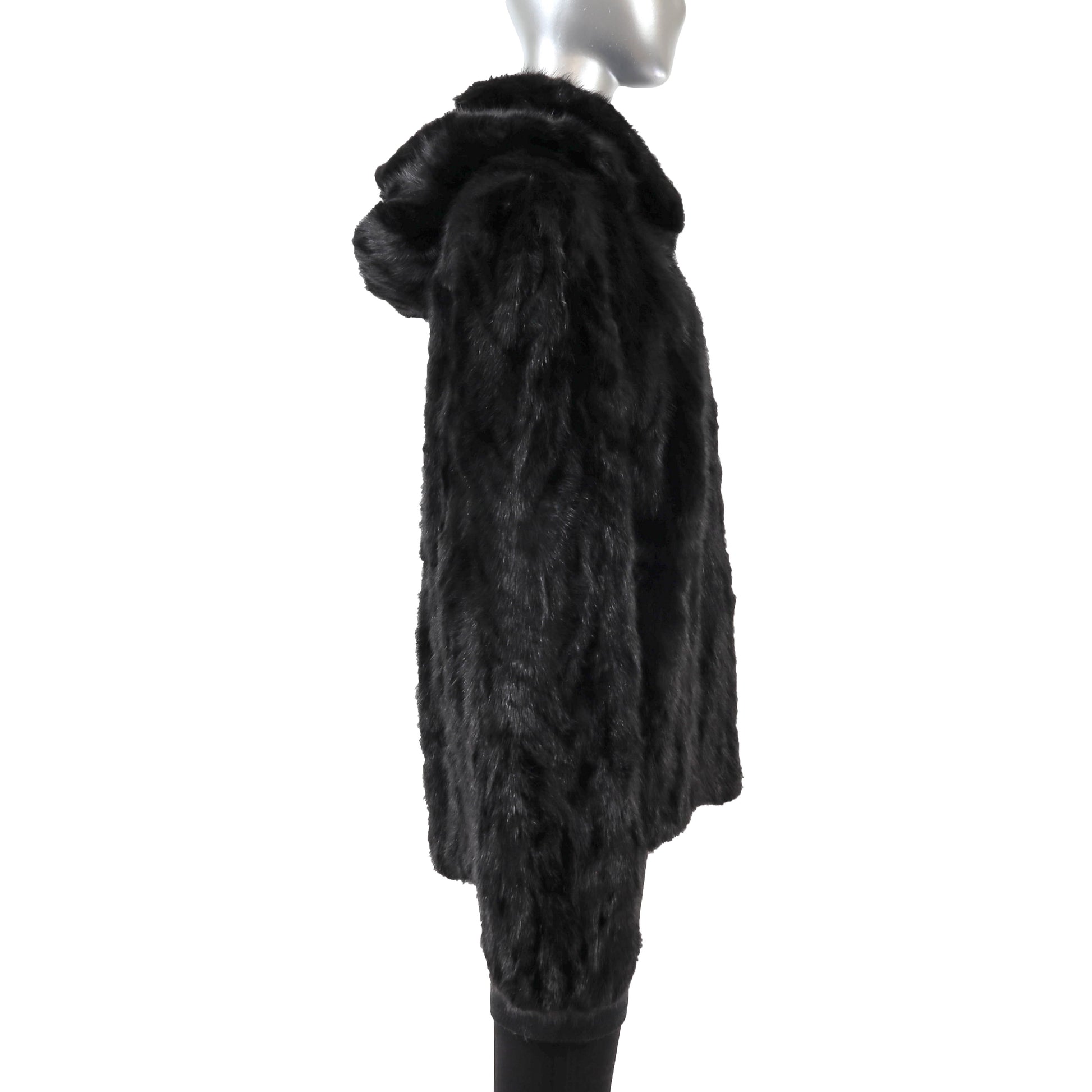 Men's Black Section Mink Jacket with Detachable Hood- Size XXL