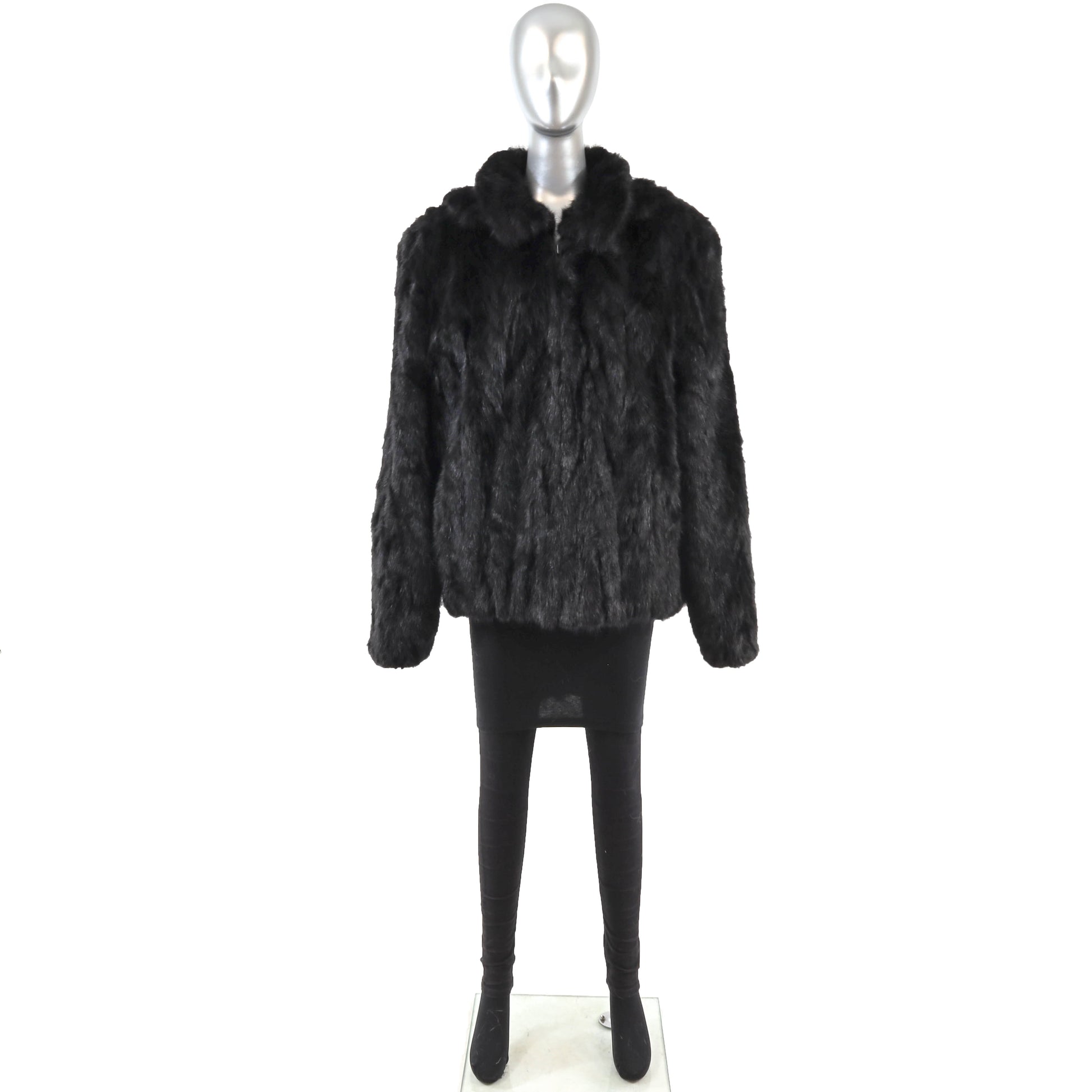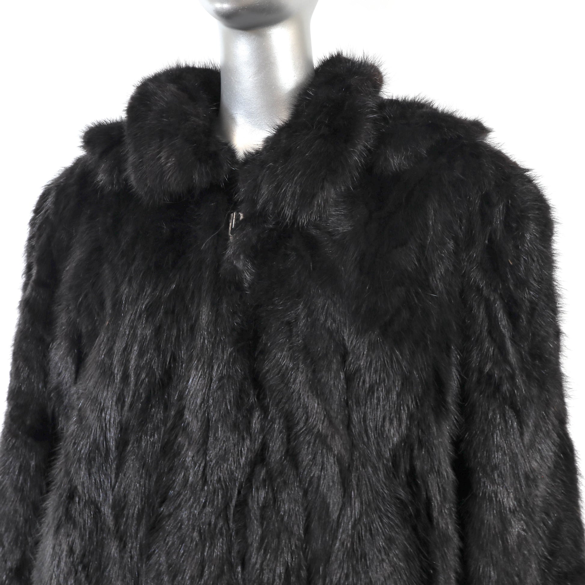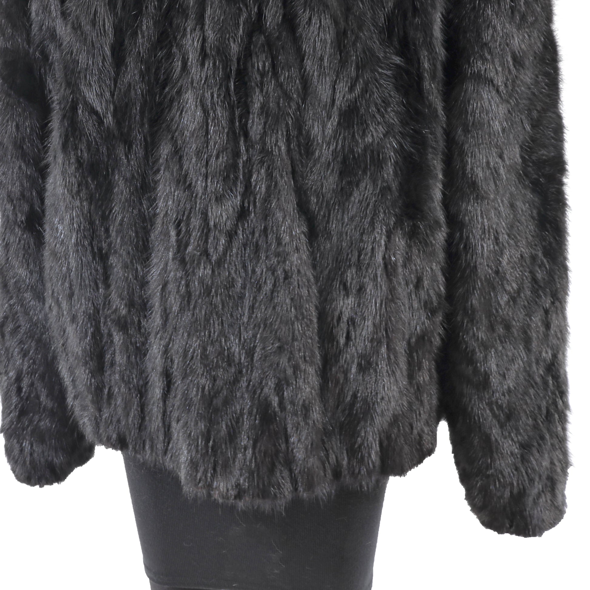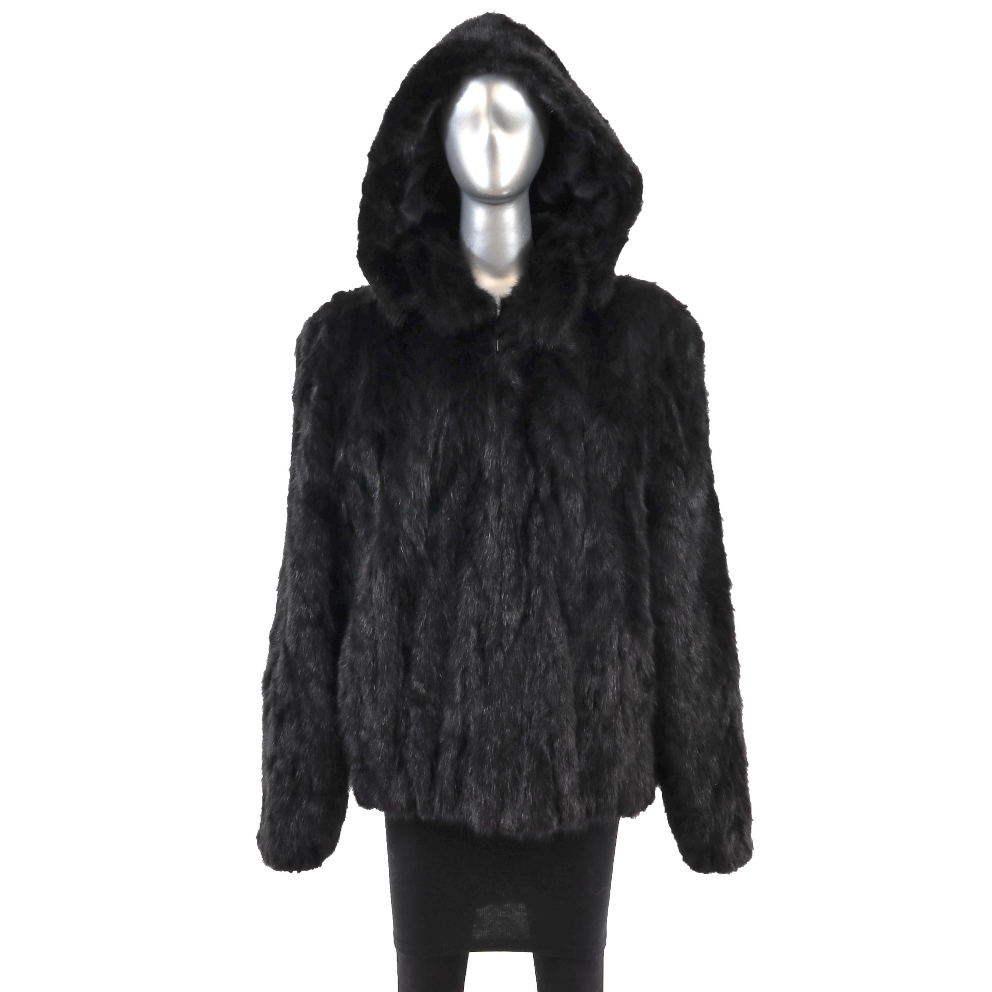 Men's Black Section Mink Jacket with Detachable Hood- Size XXL