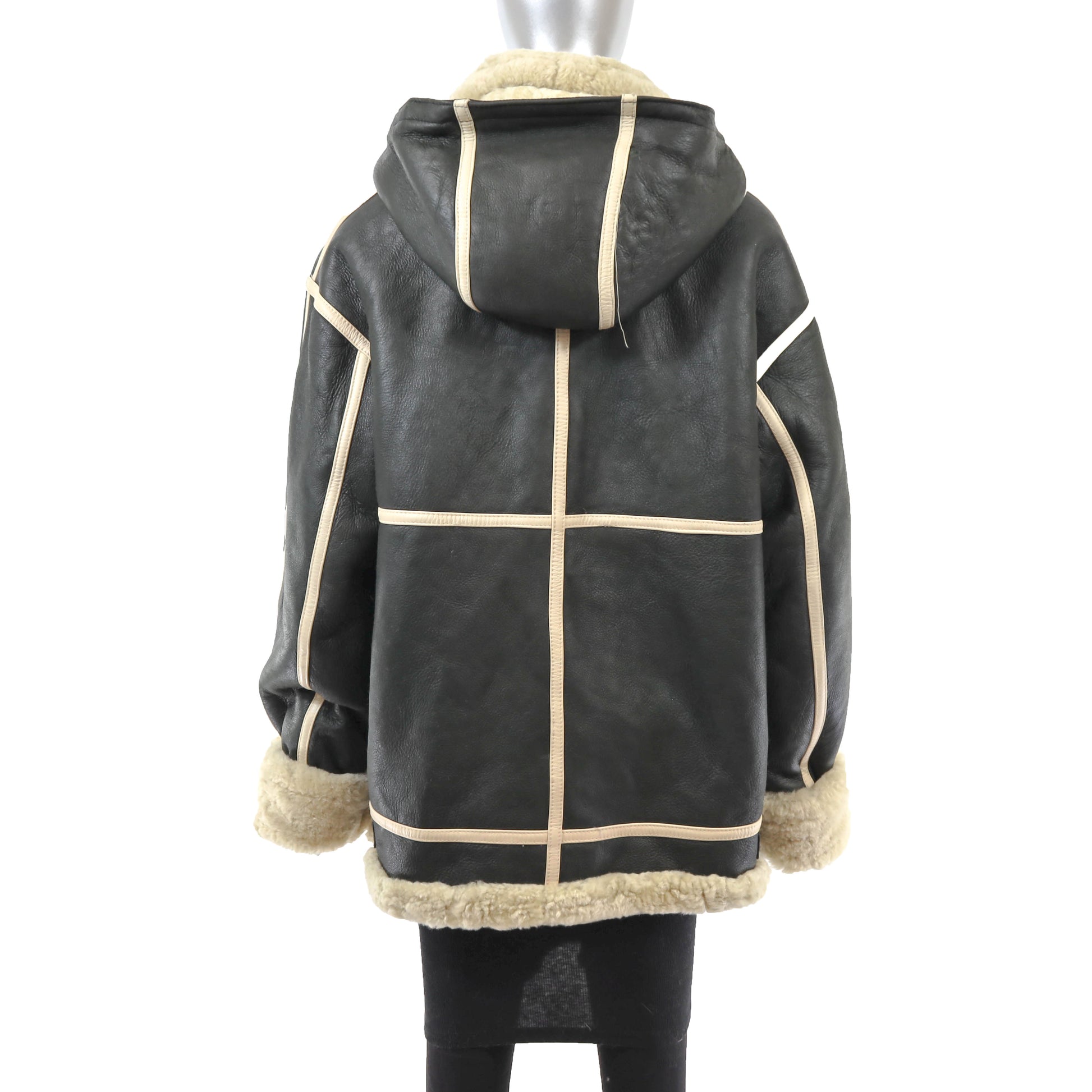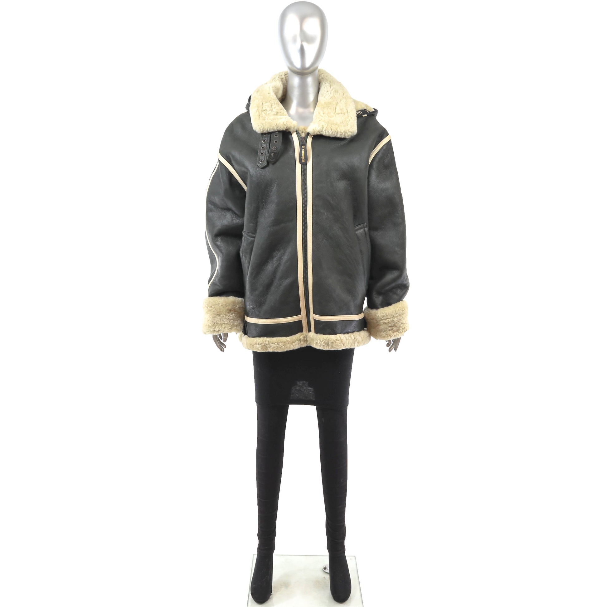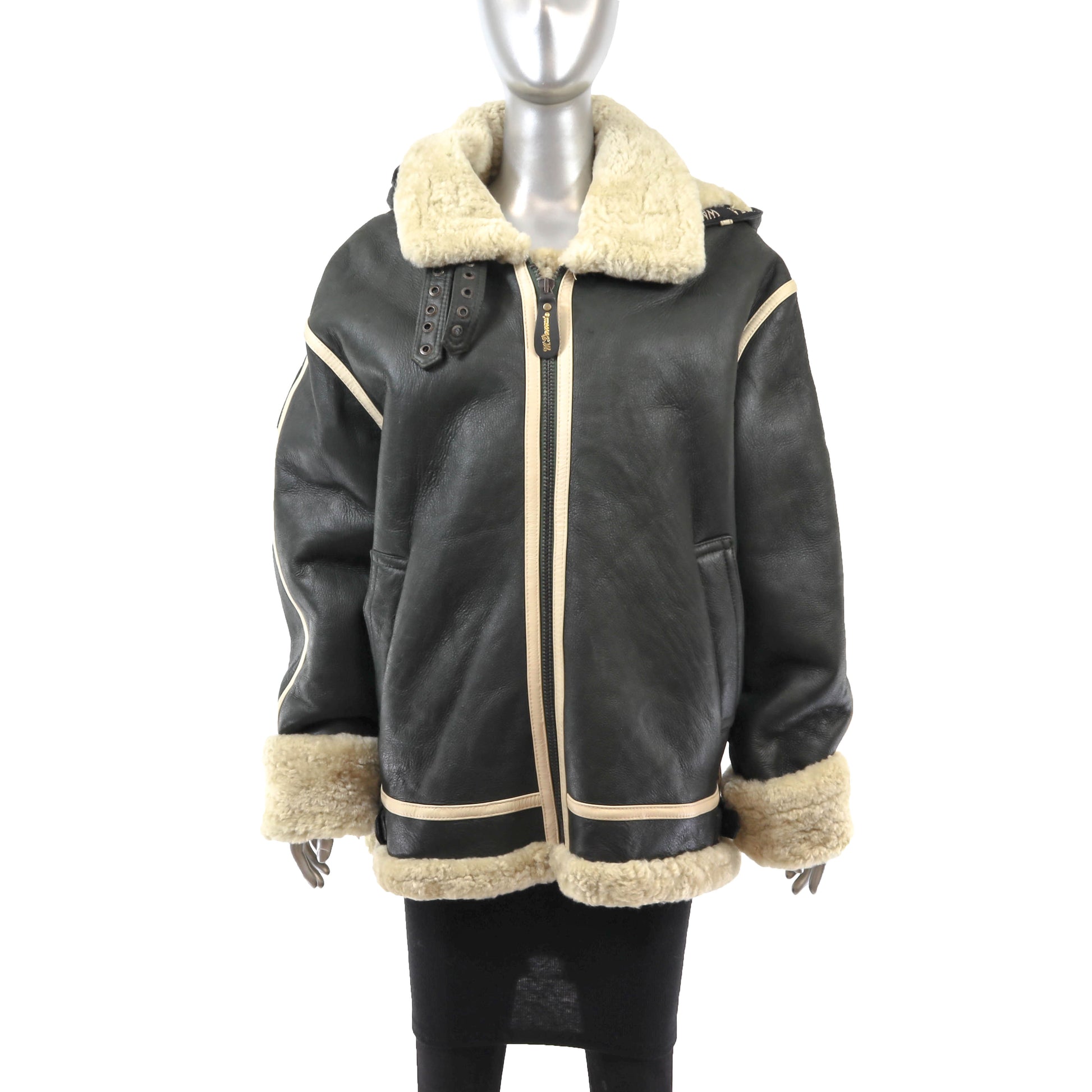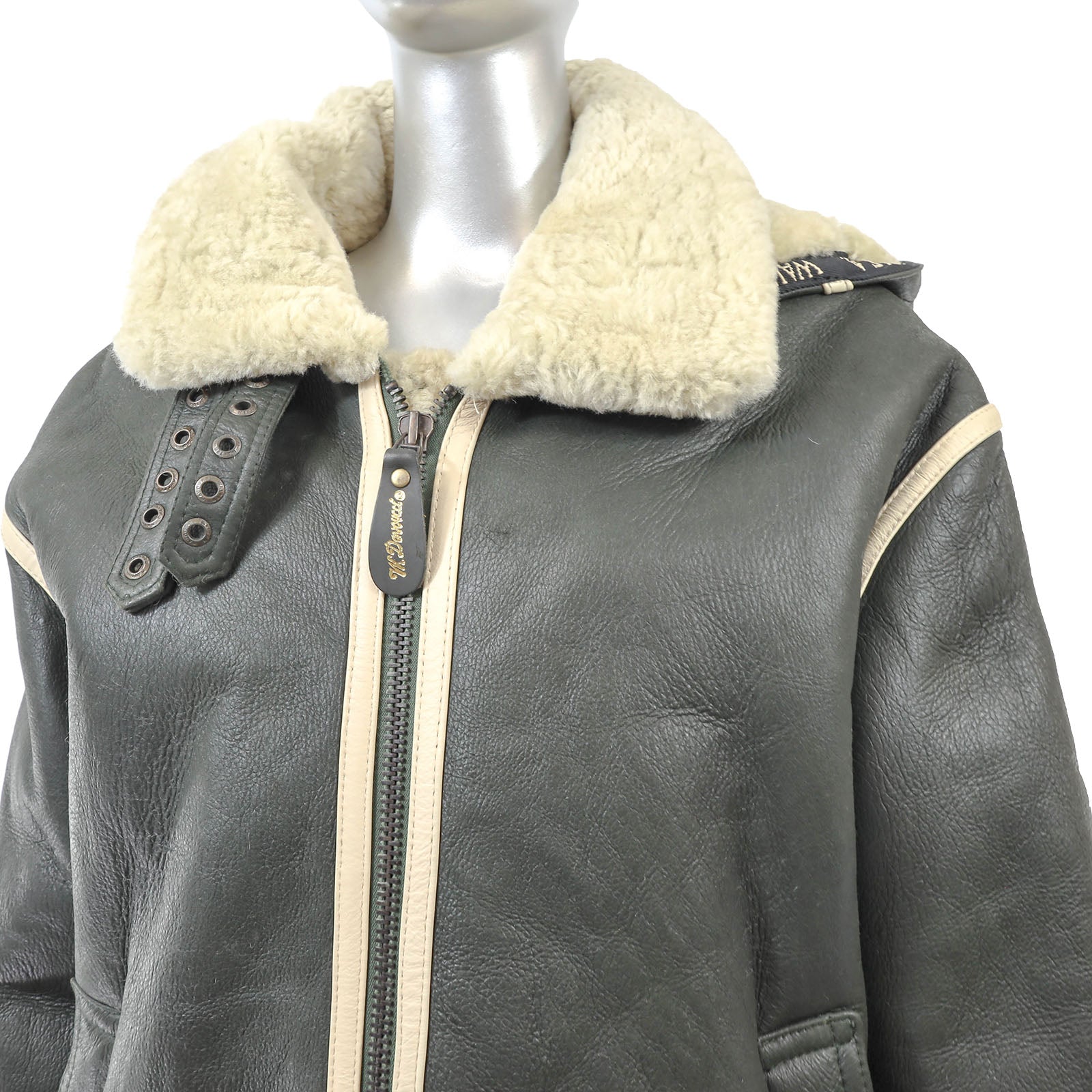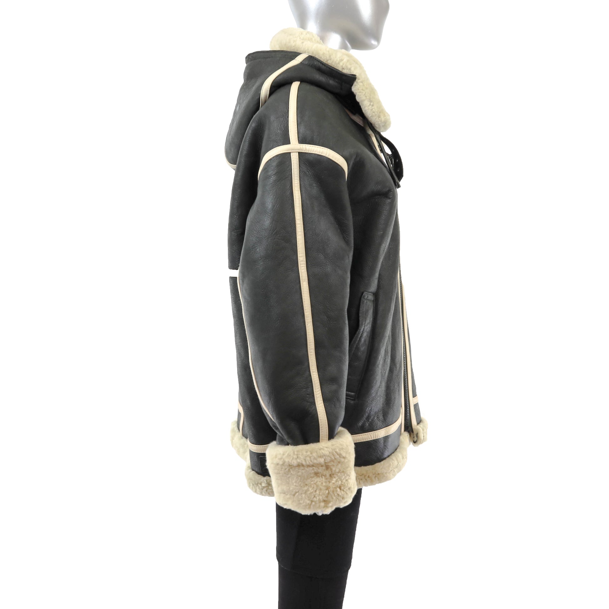 Men's Dark Green Shearling Jacket with Detachable Hood- Size XXL