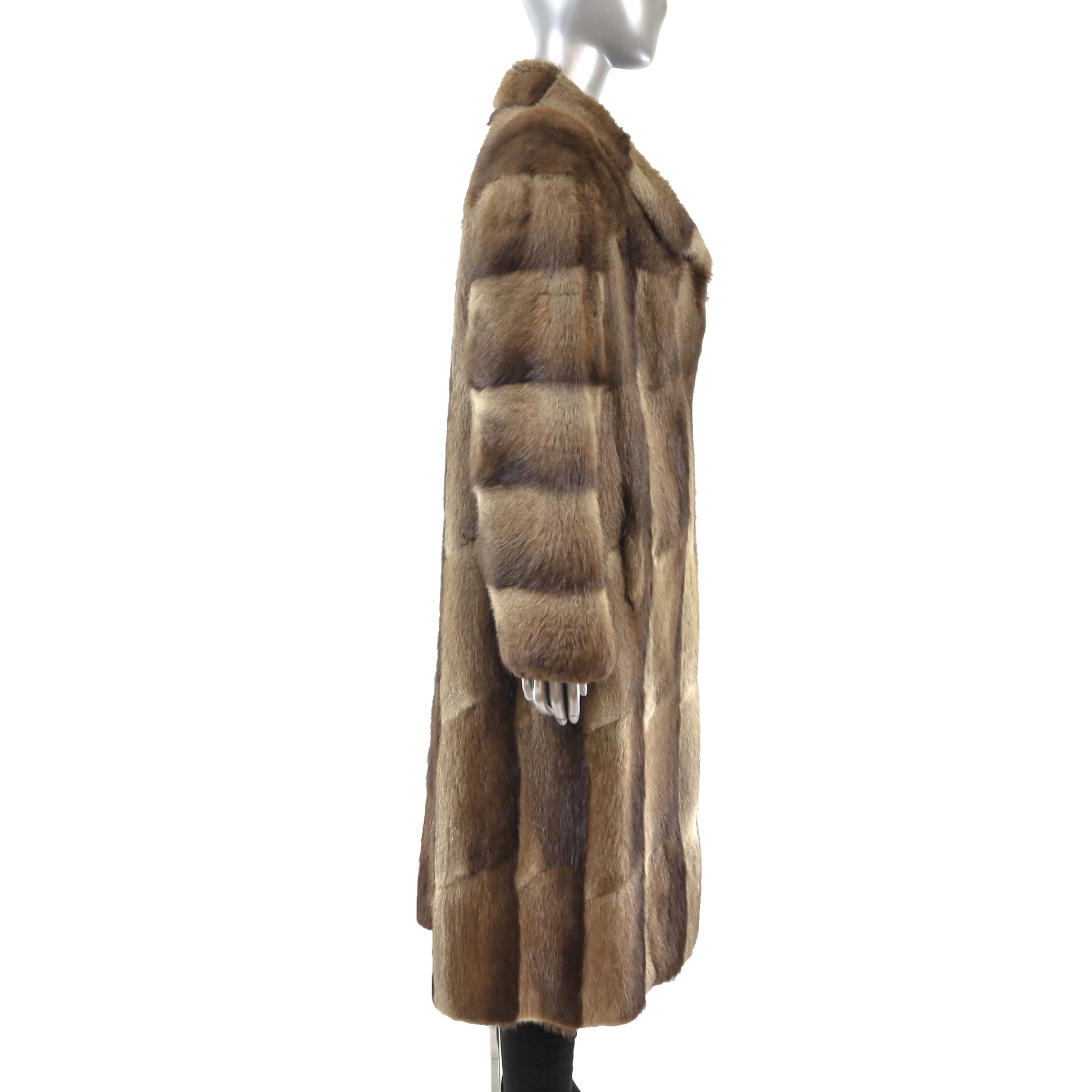 This coat is soft, supple, and well-cared for by its previous owner. It has been stored in cold storage, ensuring its longevity for many years to come.