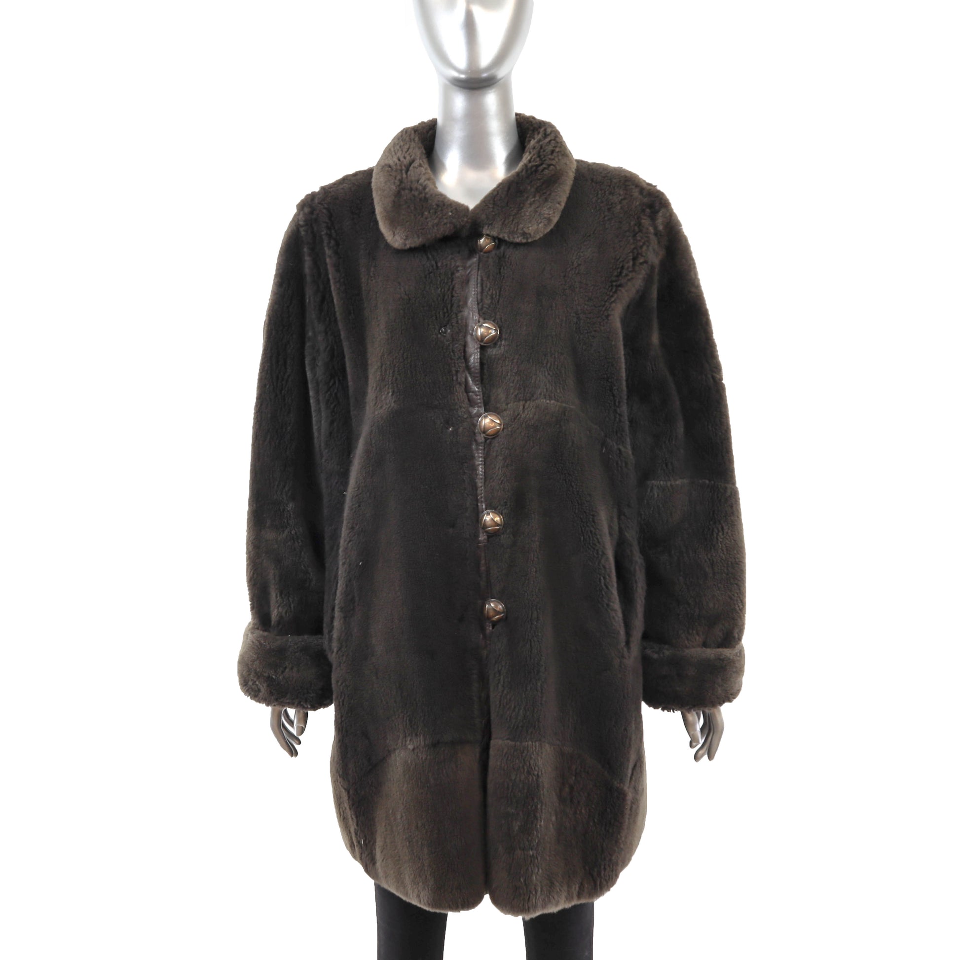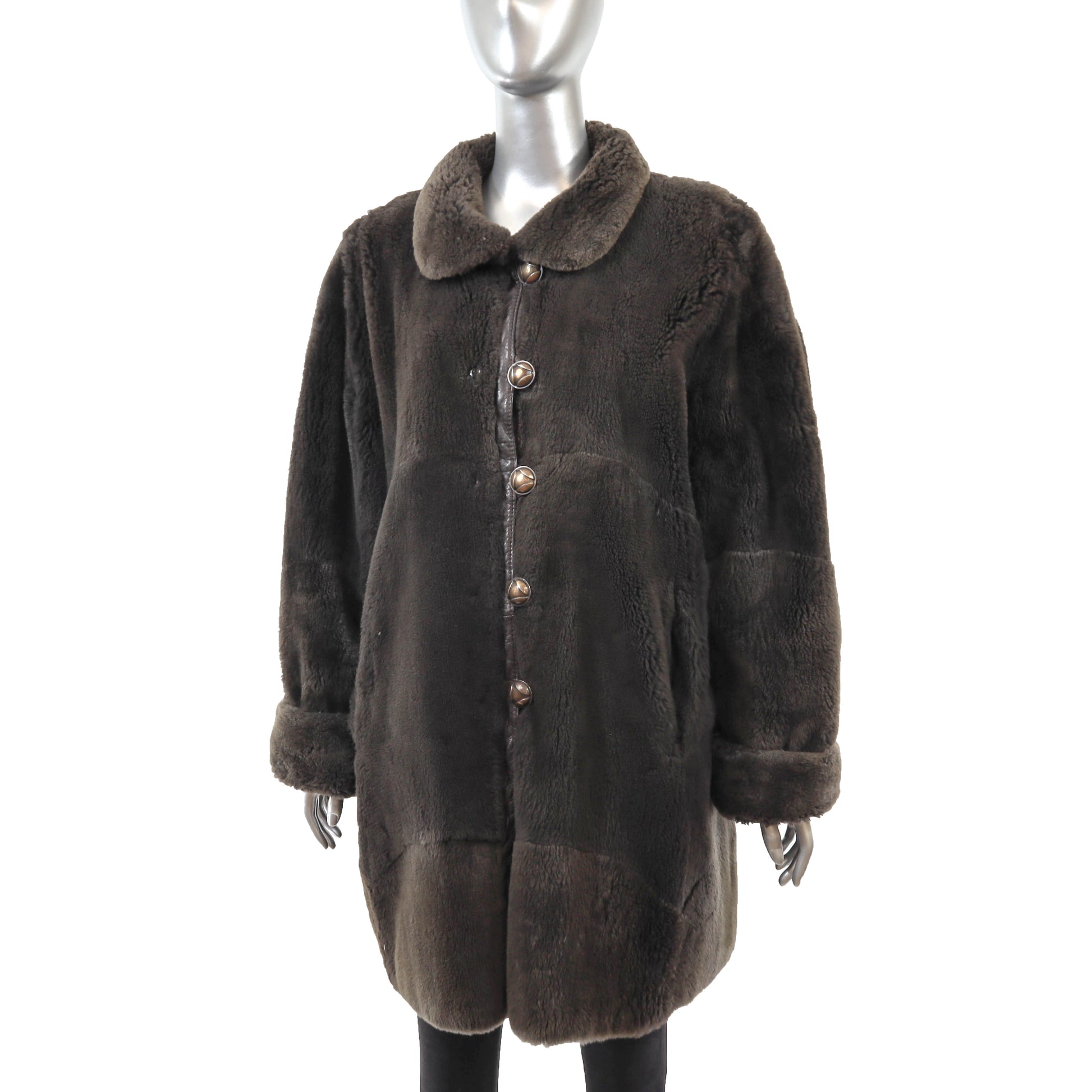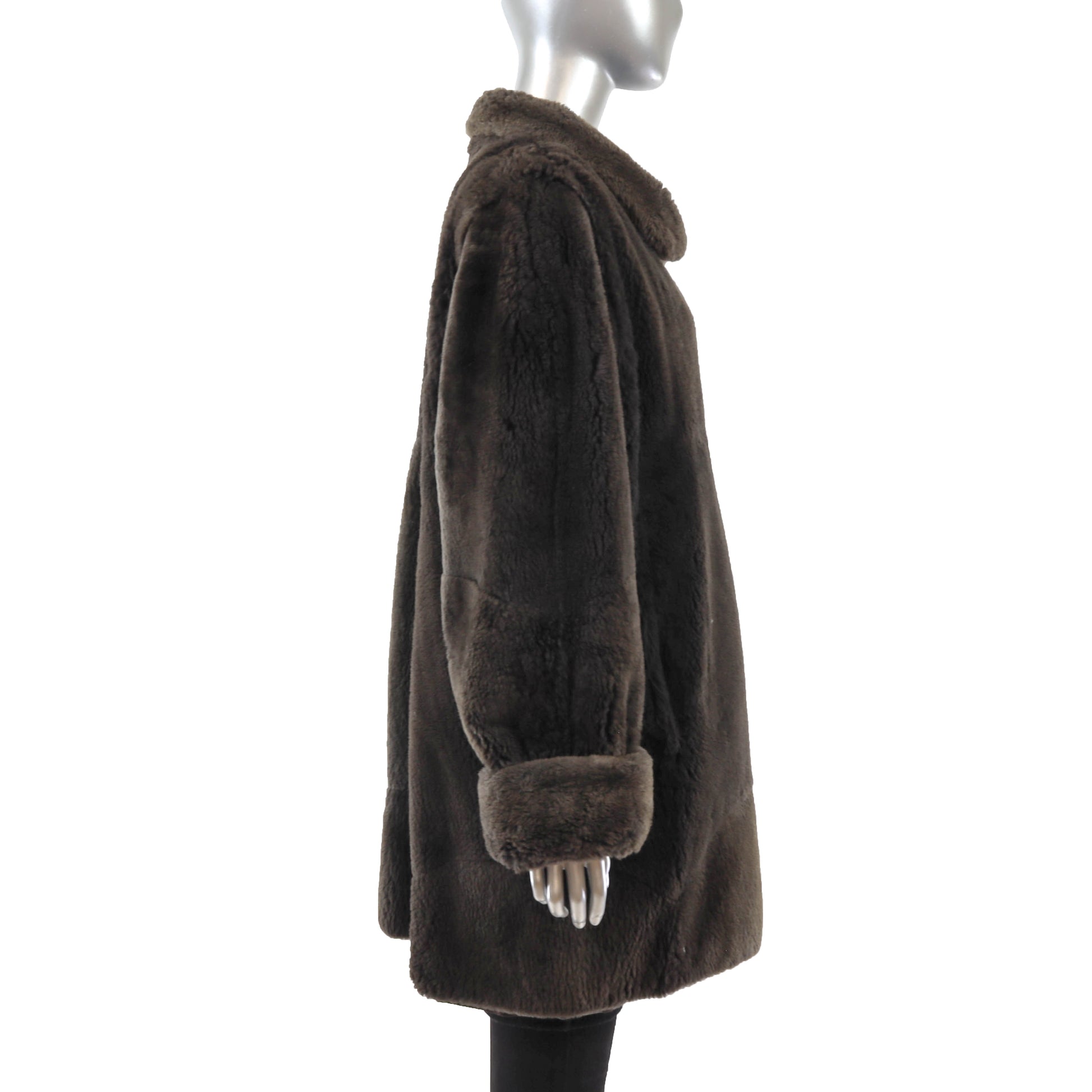 Neiman Marcus Brown Sheared Reversible Nurtia Stroller- Size XL