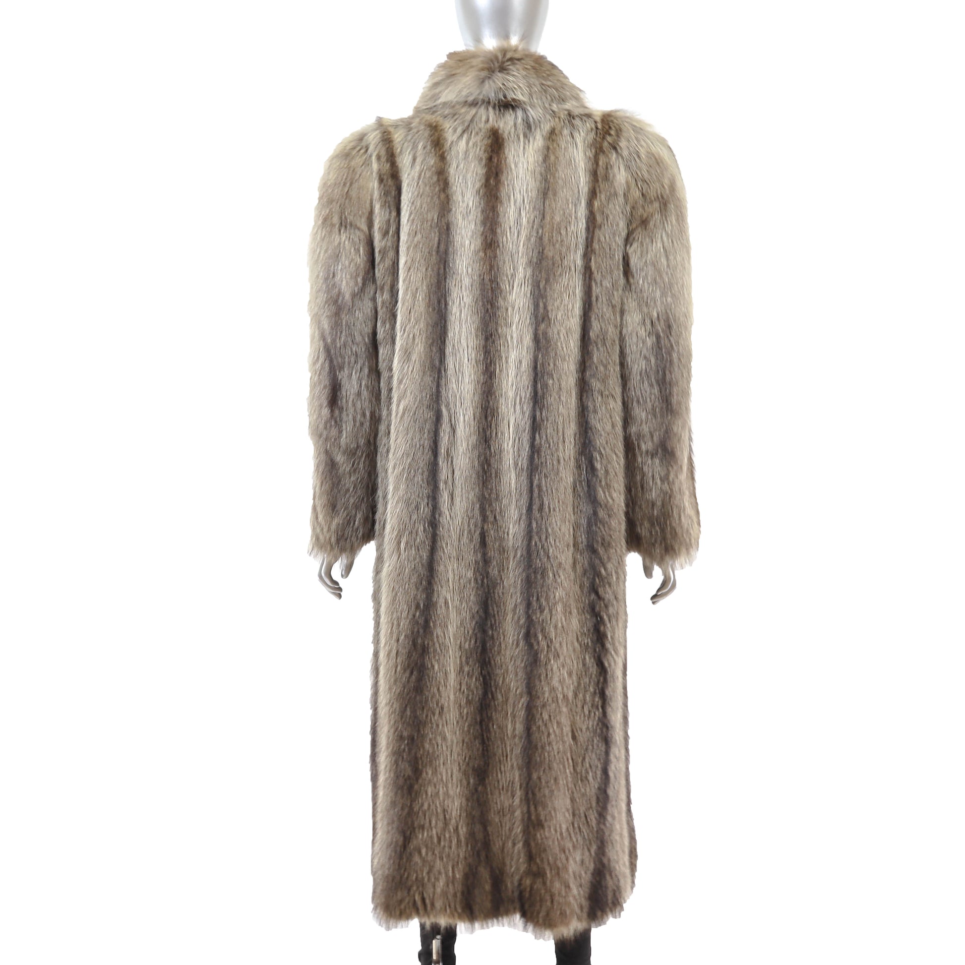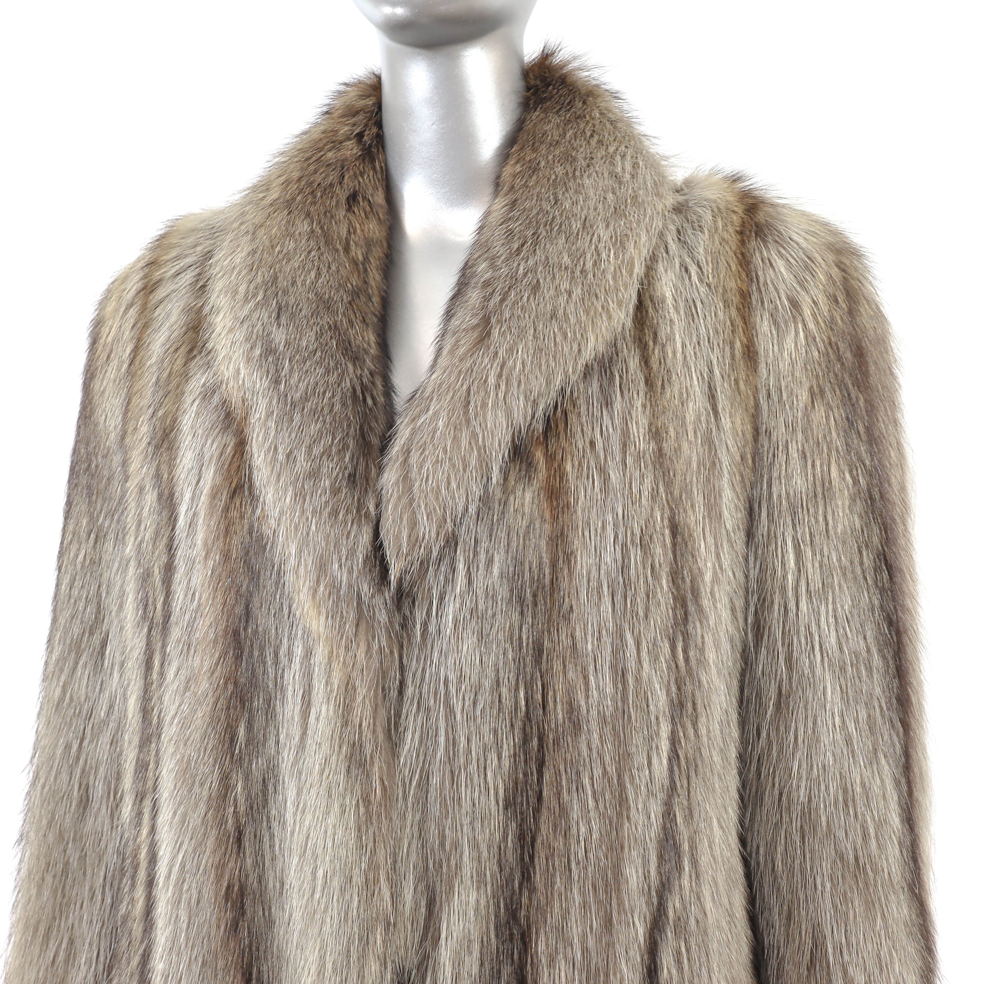 This coat is soft, supple, and well-cared for by its previous owner. It has been stored in cold storage, ensuring its longevity for many years to come.