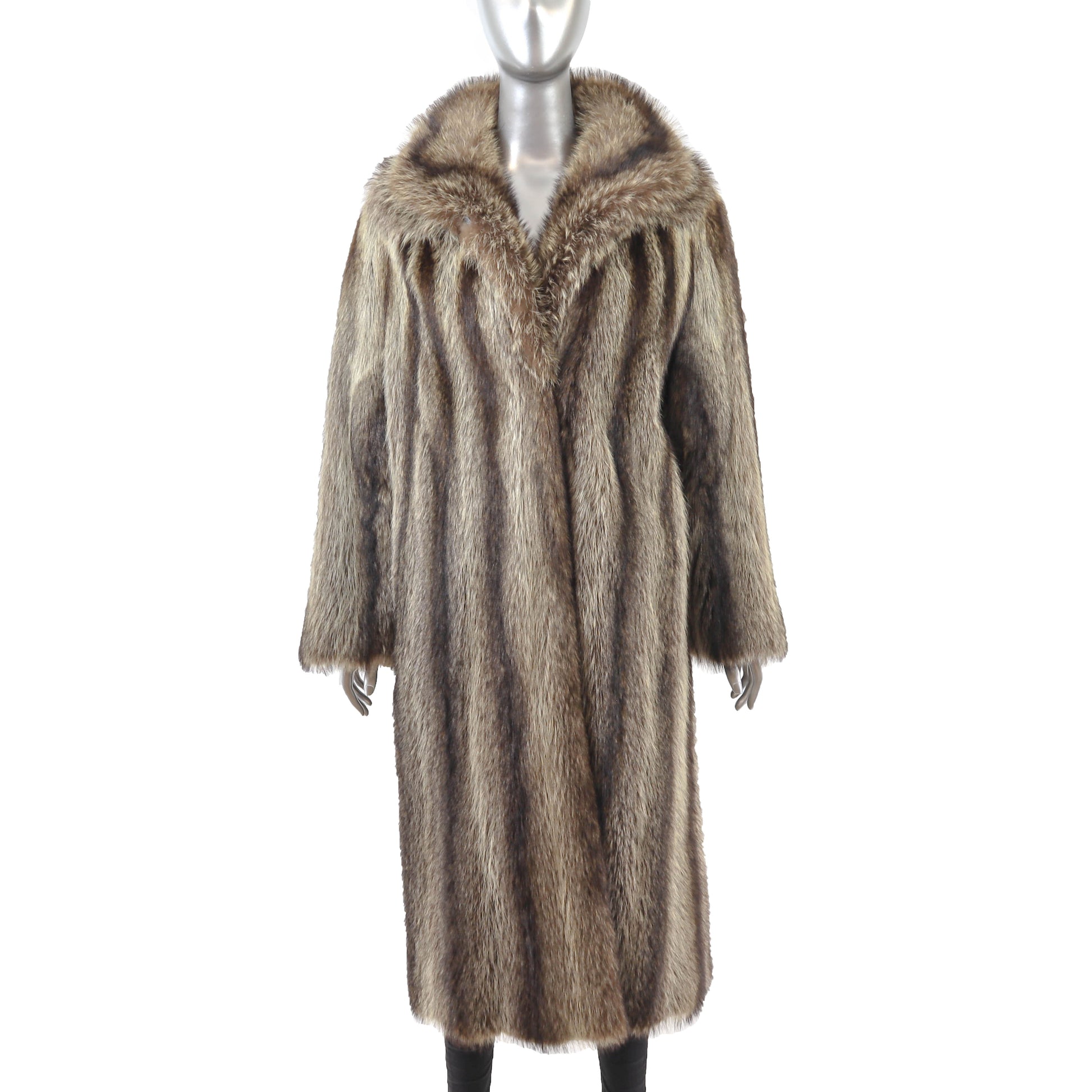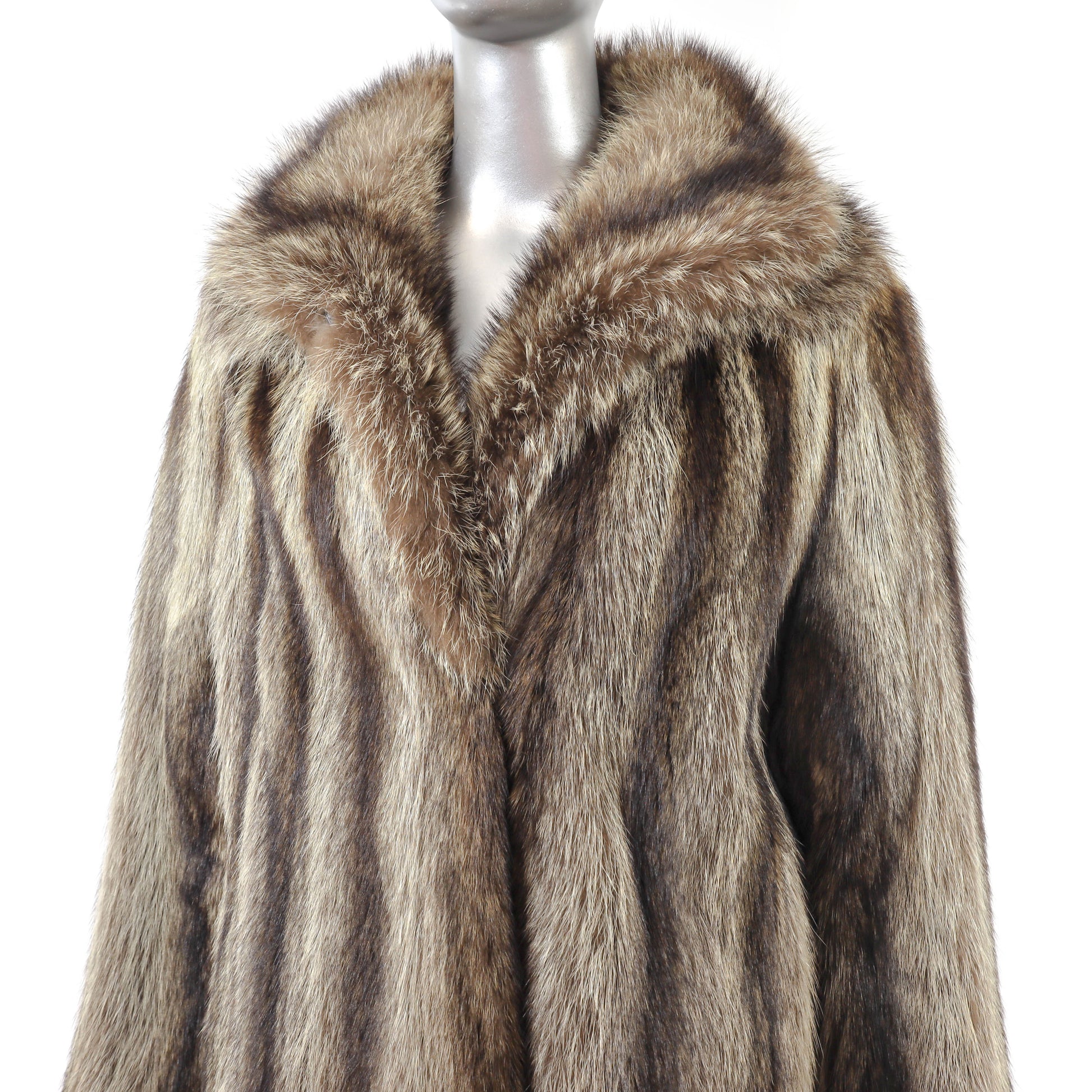 This coat is soft, supple, and well-cared for by its previous owner. It has been stored in cold storage, ensuring its longevity for many years to come.