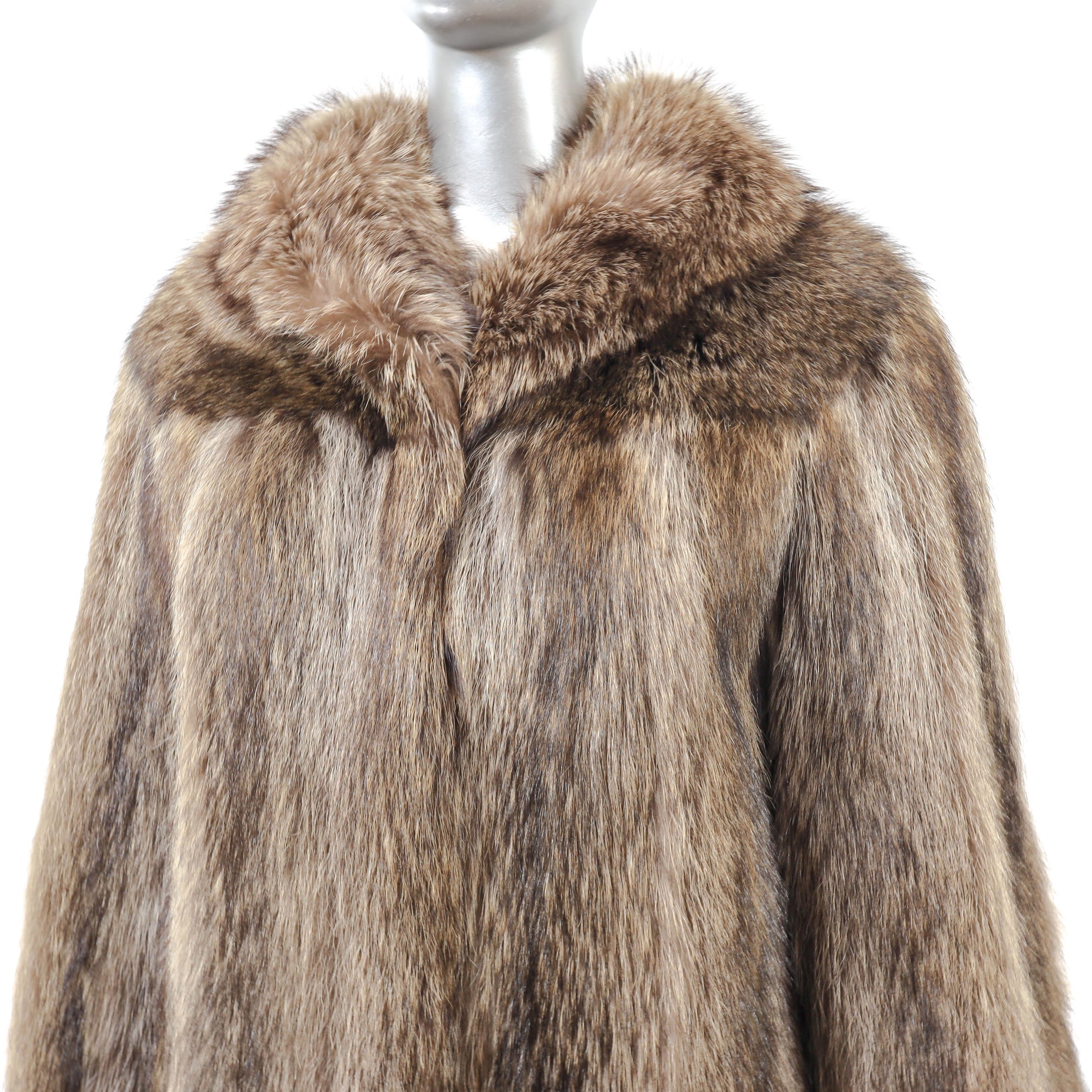 This coat is soft, supple, and well-cared for by its previous owner. It has been stored in cold storage, ensuring its longevity for many years to come.