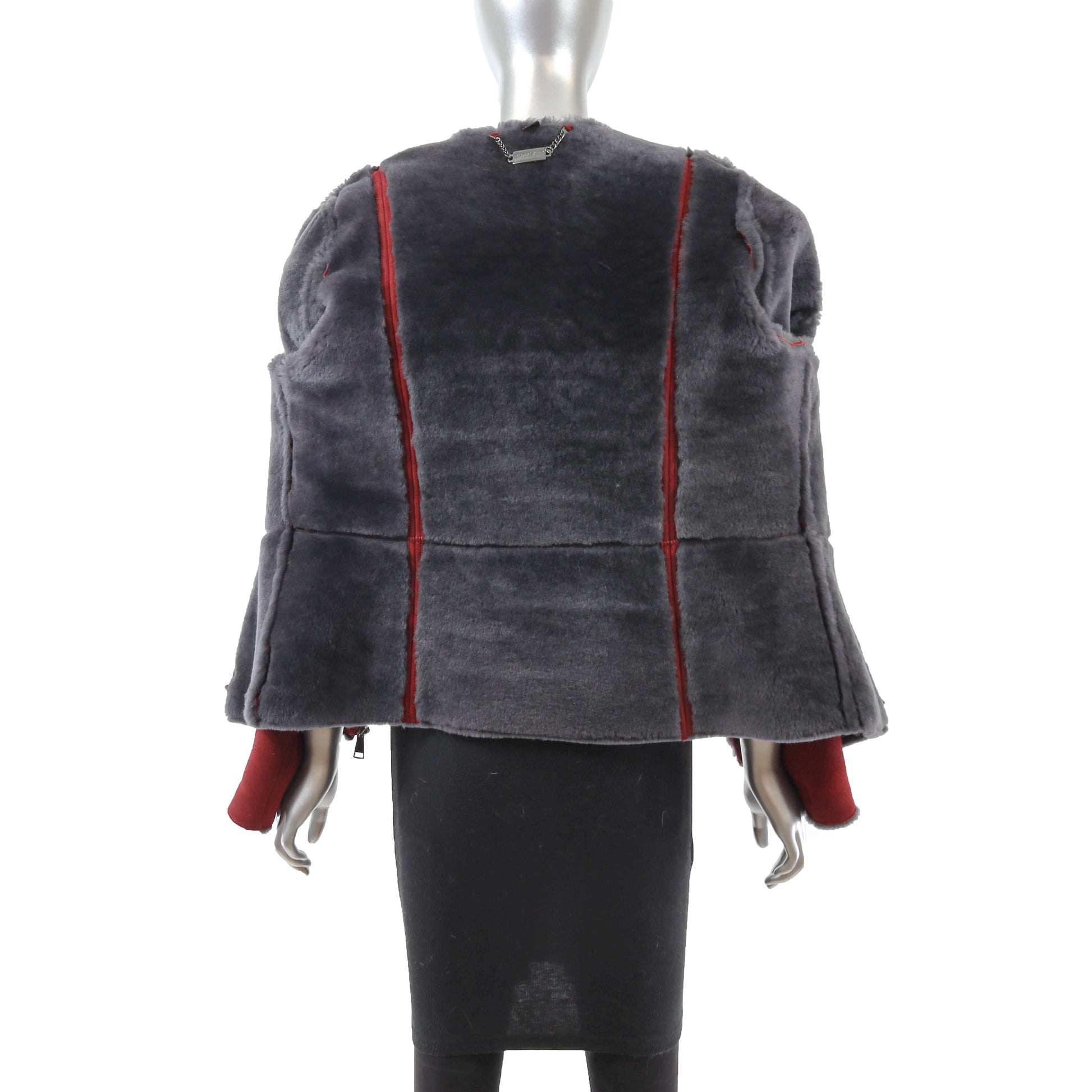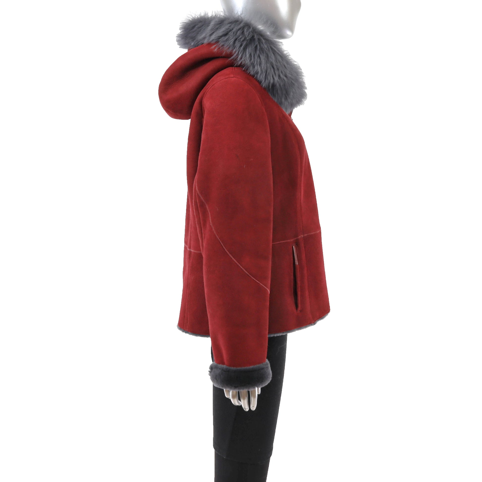 Red Hooded Shearling Jacket- Size L