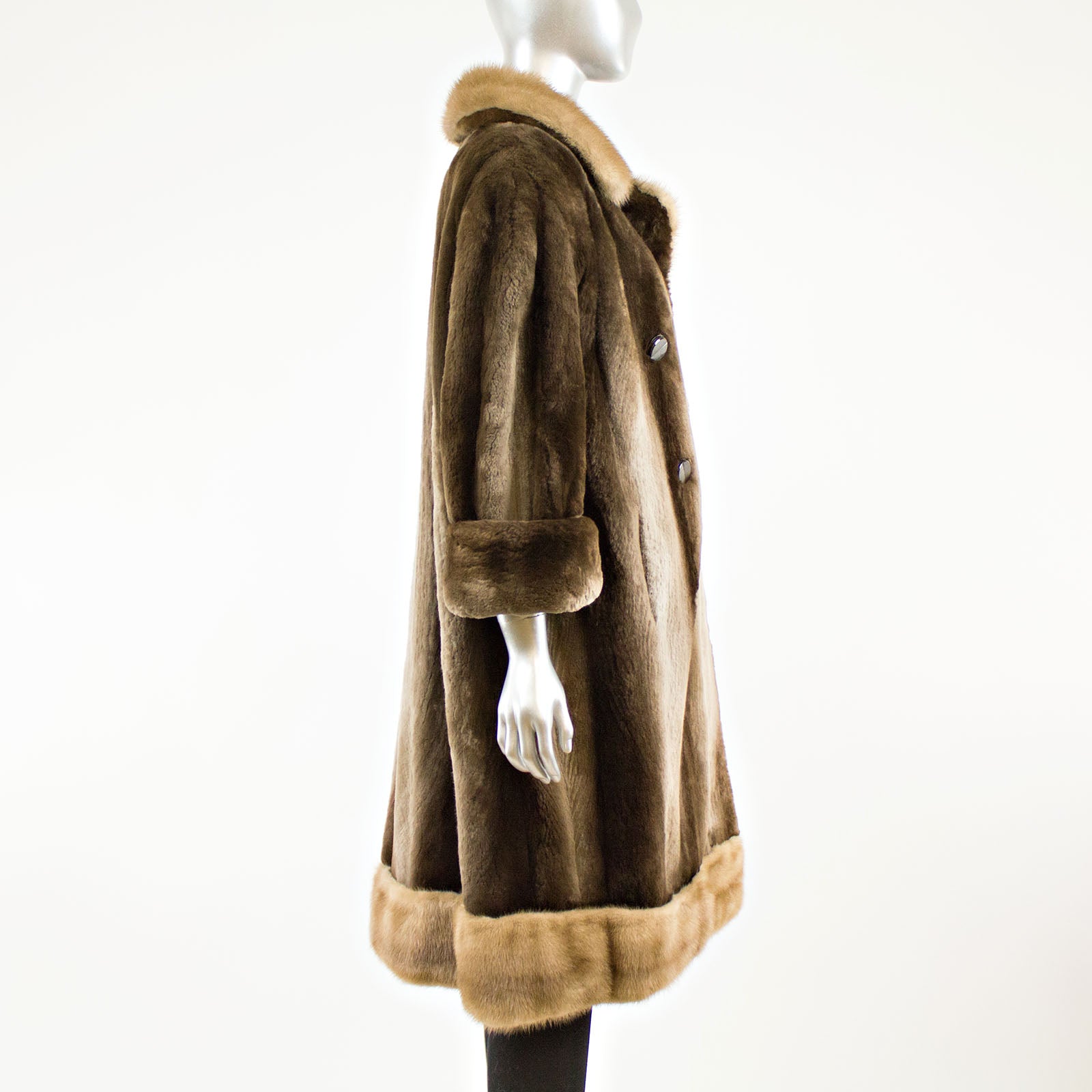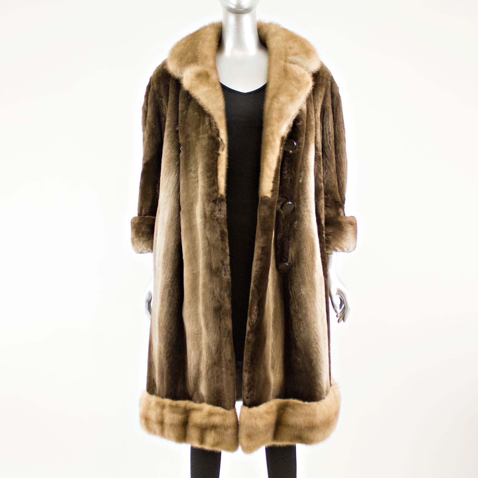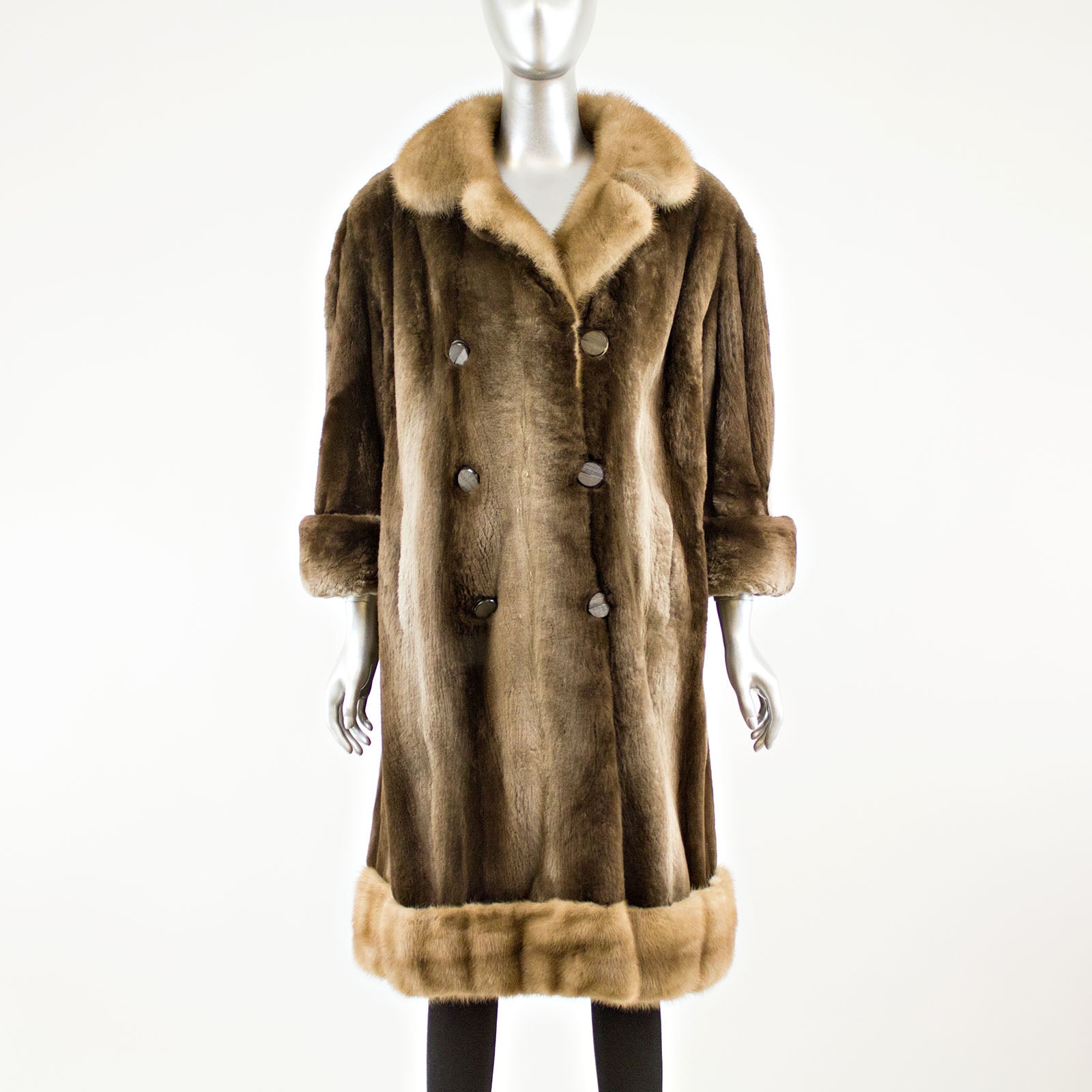 Sheared Beaver Coat with Mink Collar & Hem- Size L