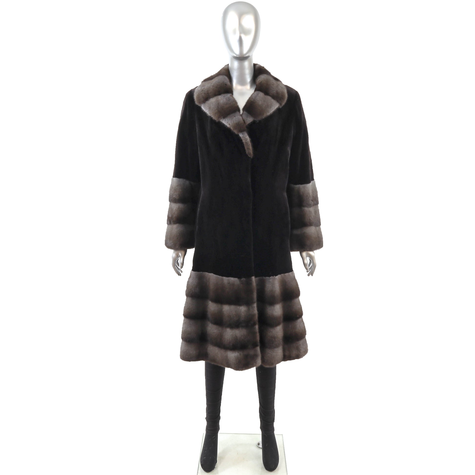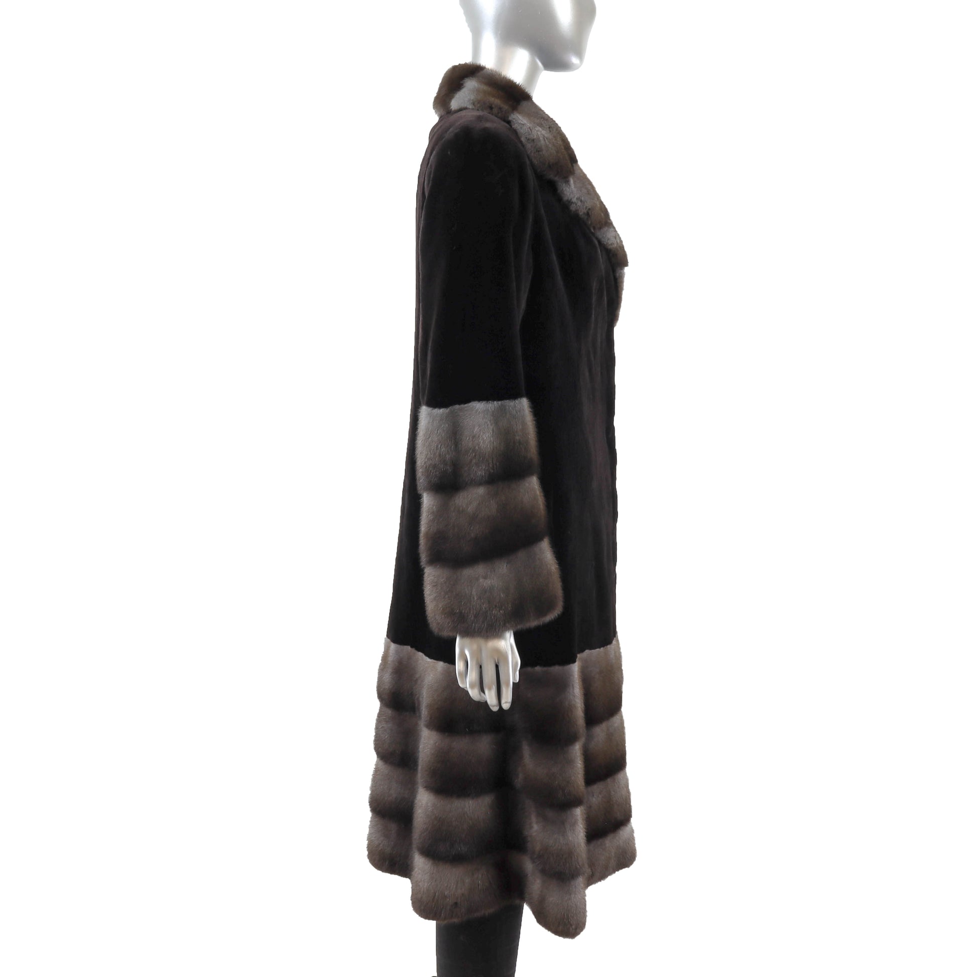Sheared Mink 7/8 Coat with Mink Trim- Size S
